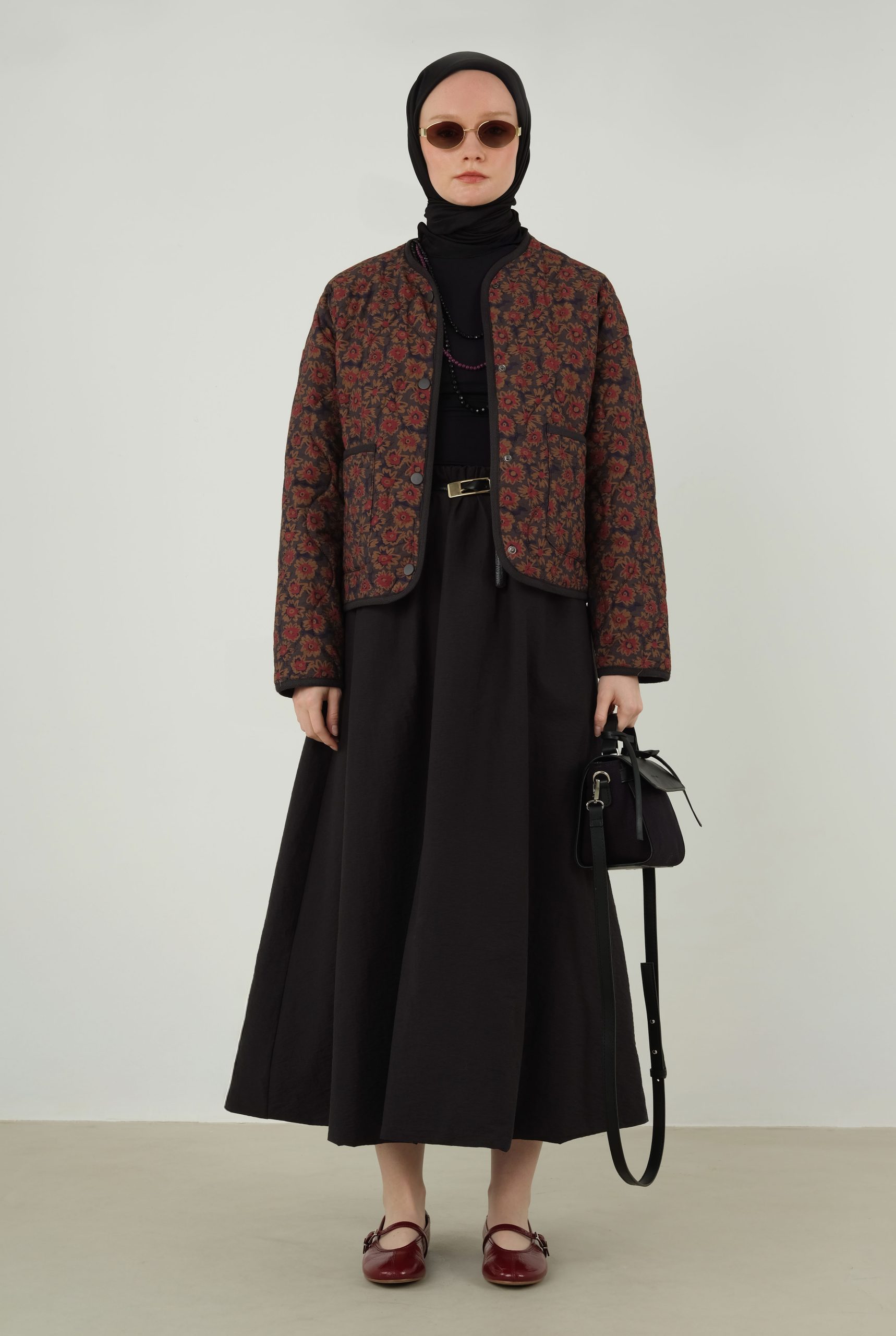 It is an easily shaped scarf that you can easily use in your daily life thanks to its structure that does not require ironing due to its fabric. Suitable for seasonal use. It is made of breathable, sweat-proof fabric. Measure: 97×97