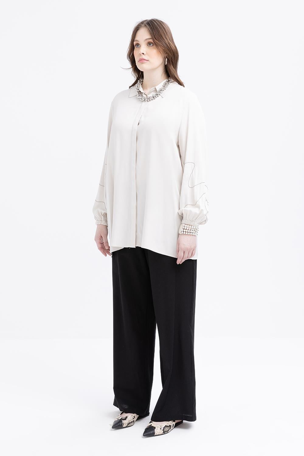 Tags: elastic cuff, embellished sleeve, modern style, Plus Size, shirt tunic, summer fashion, viscose