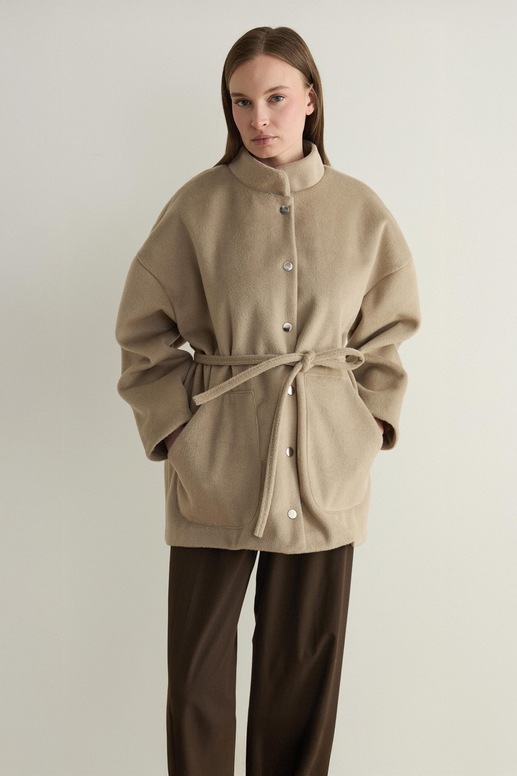 Be the first to review “Stone-Colored Glittery Poplin Belted Jacket” Cancel reply