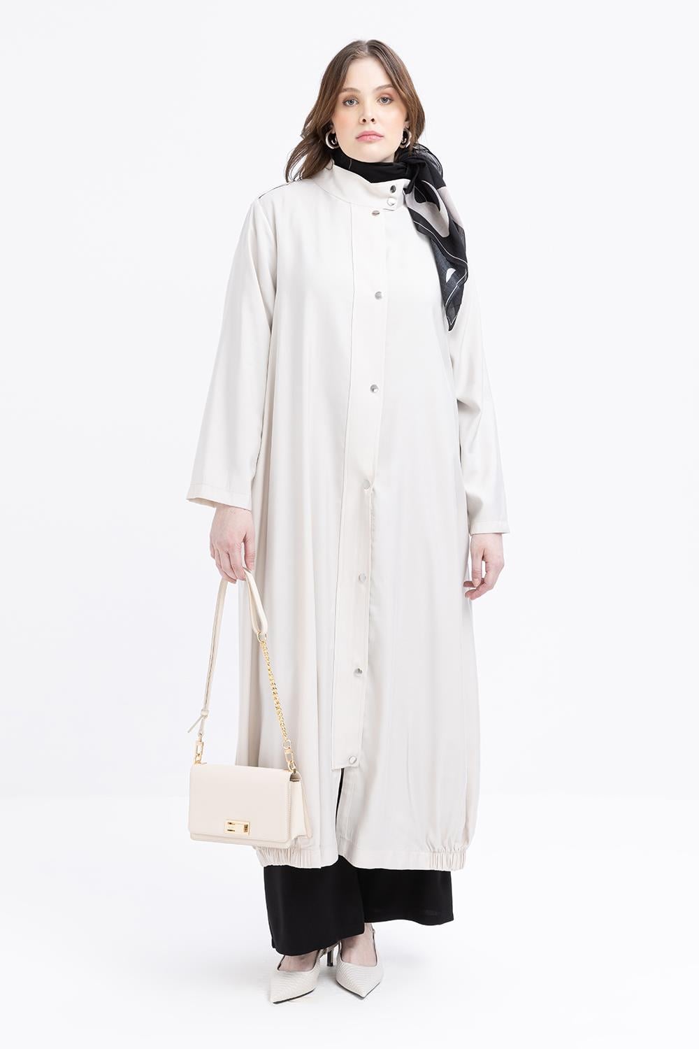Achieve a modern and comfortable style with the Stone-Hem Elastic Snap Closure Abaya. Explore other models in ALLDAY’s Abaya category. Complete your look with the Stone-Hem Elastic Snap Closure Abaya – Discover Now!