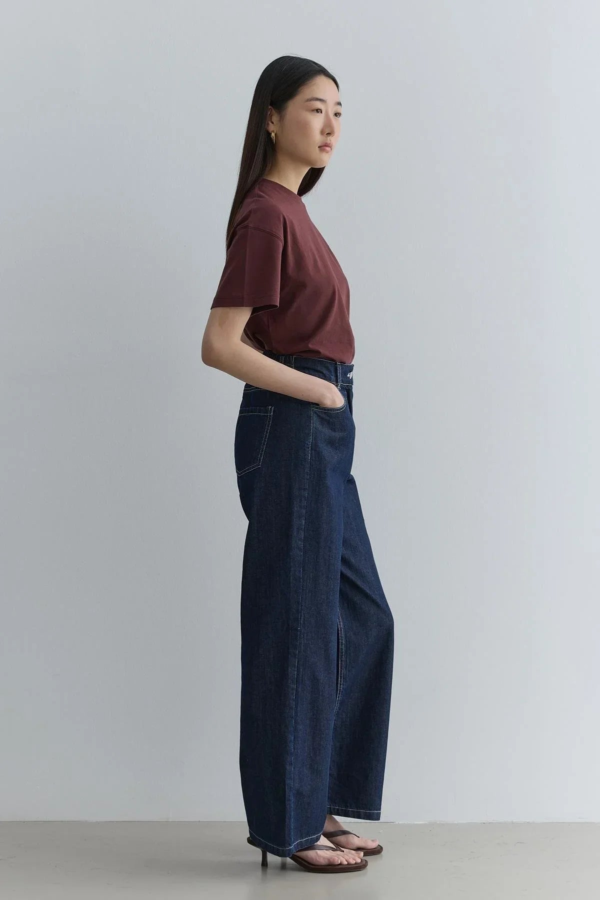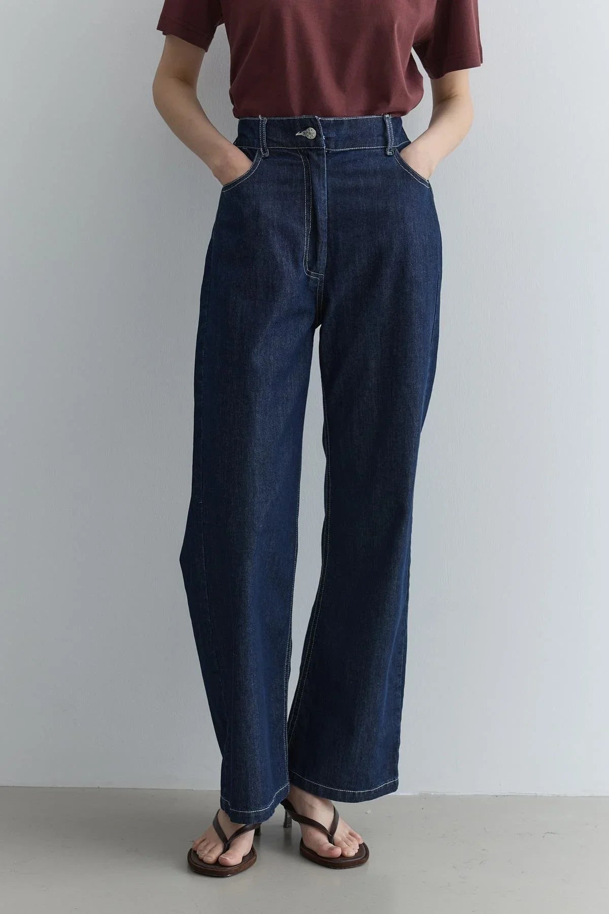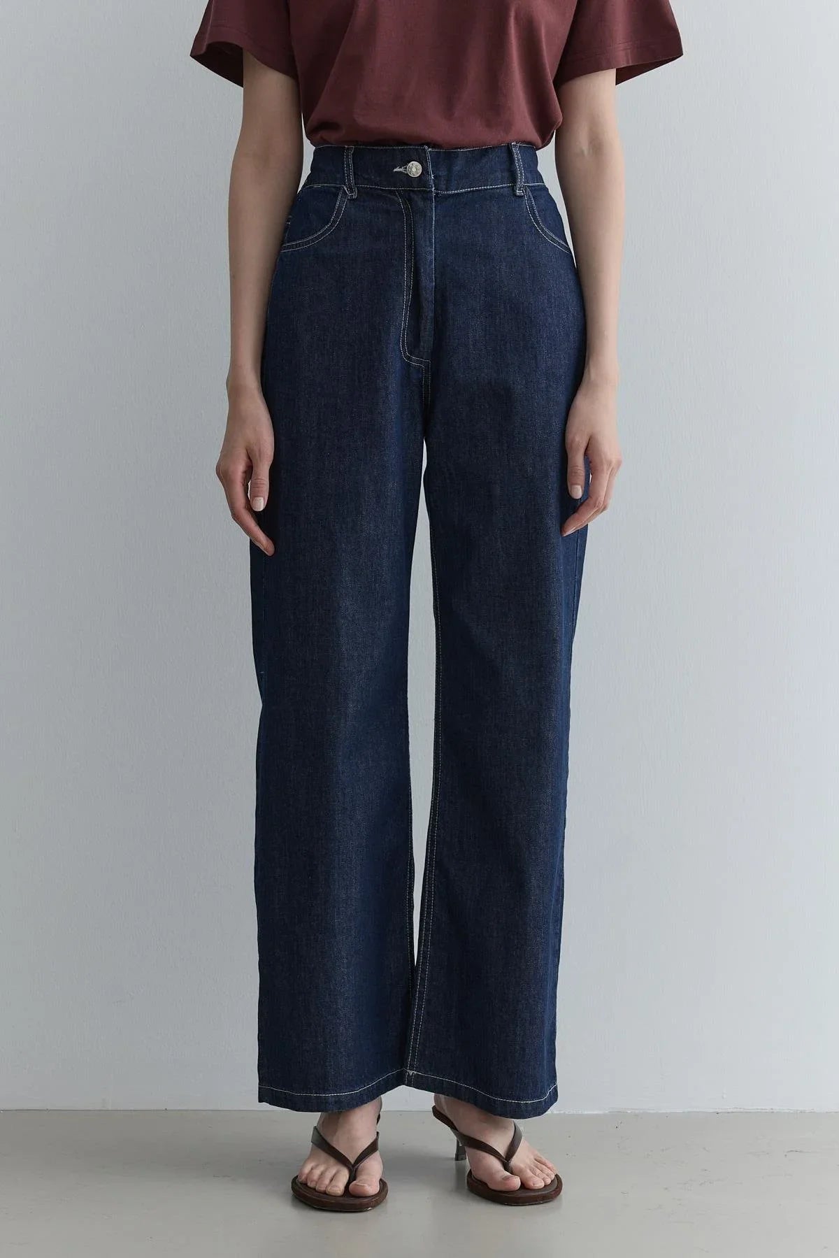 Wide-Leg Pants with Cut Detail – Indigo