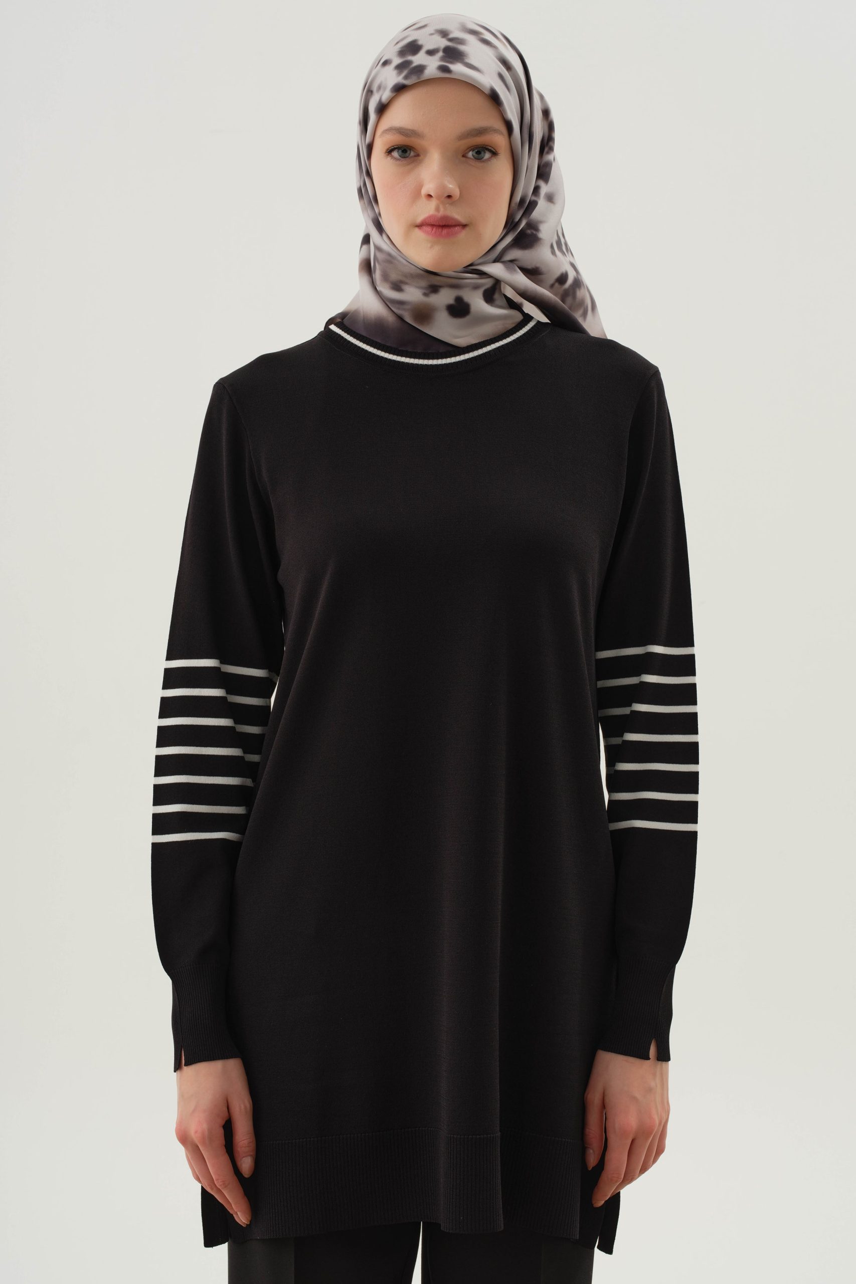 Offering a modern silhouette with its asymmetrical cut, this tunic combines simple elegance with details with its half-placket collar. While providing comfort all day long with its light and flowing structure, it highlights your style with its unique style. It is an ideal piece for transitioning from casual to elegant looks.