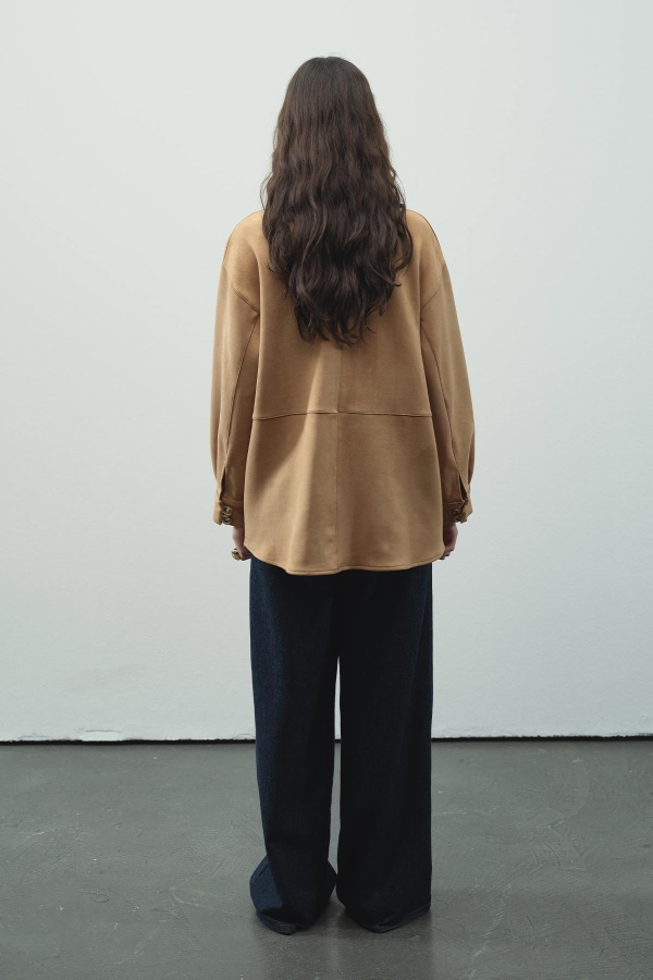 Suede Button-Detail Camel Suede Shirt