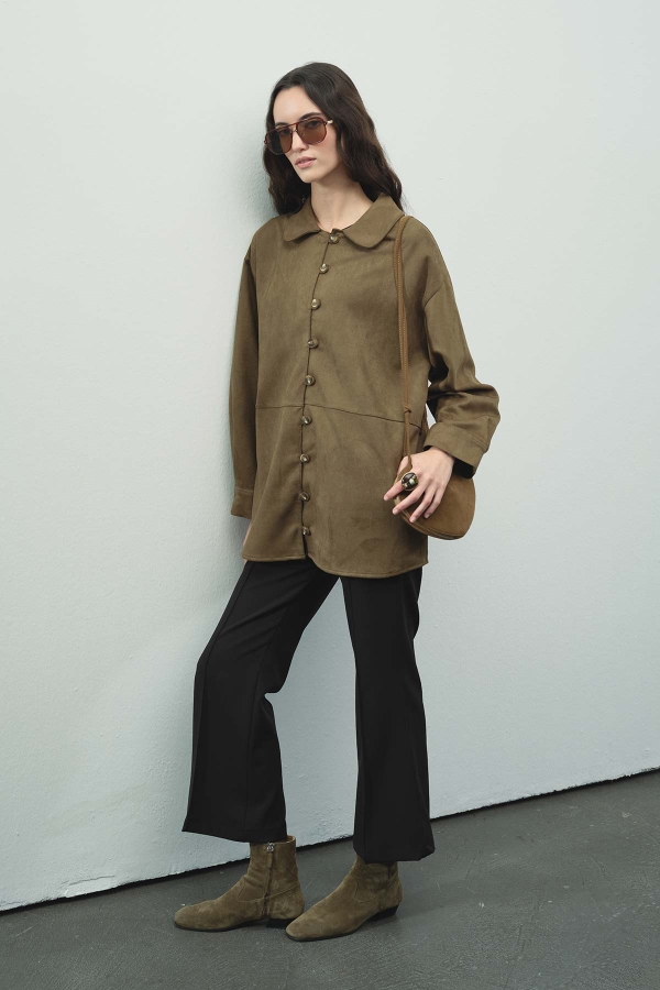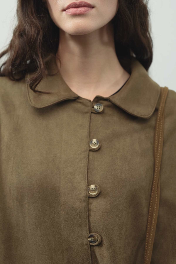 Be the first to review “Suede Fringe Detail Khaki Suede Shirt” Cancel reply