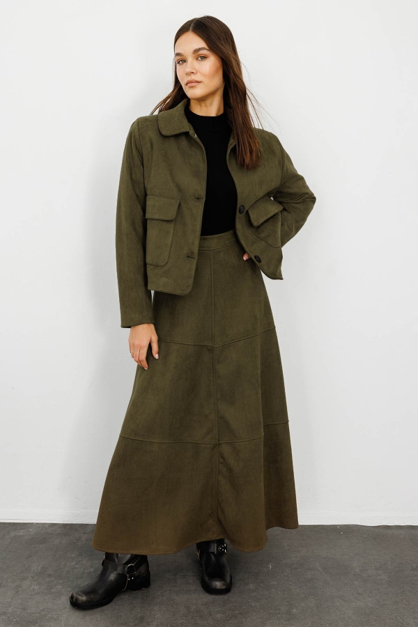 Suede Khaki Long Skirt