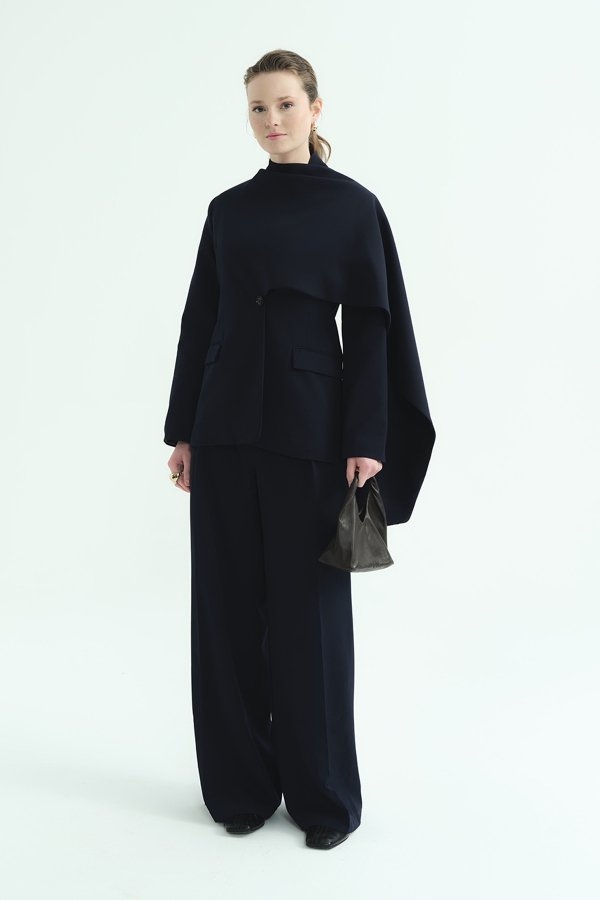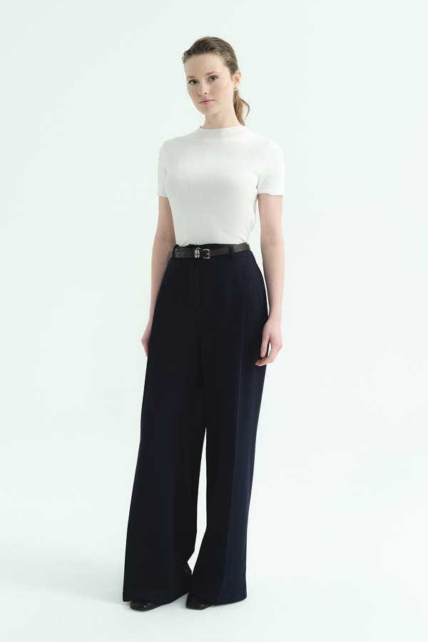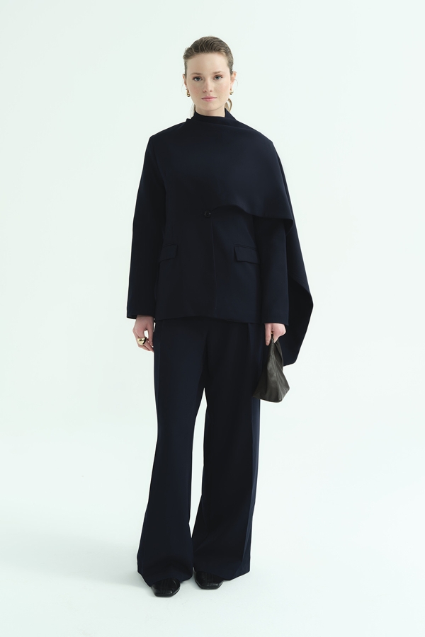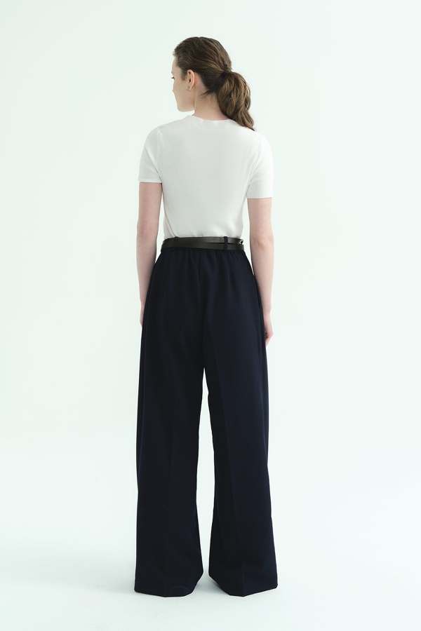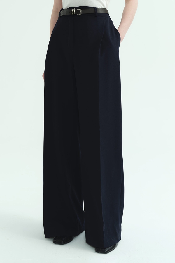 Tek Pileli Palazzo Lacivert Pantolon