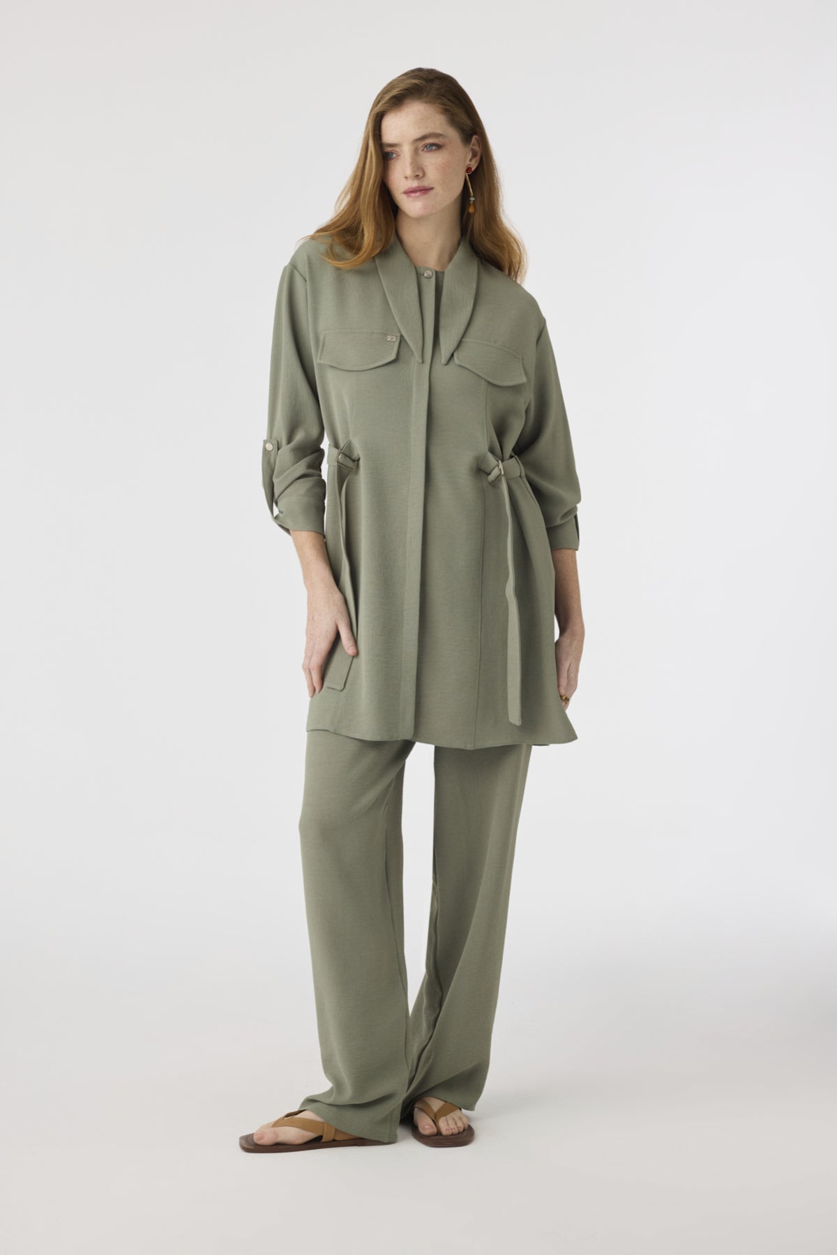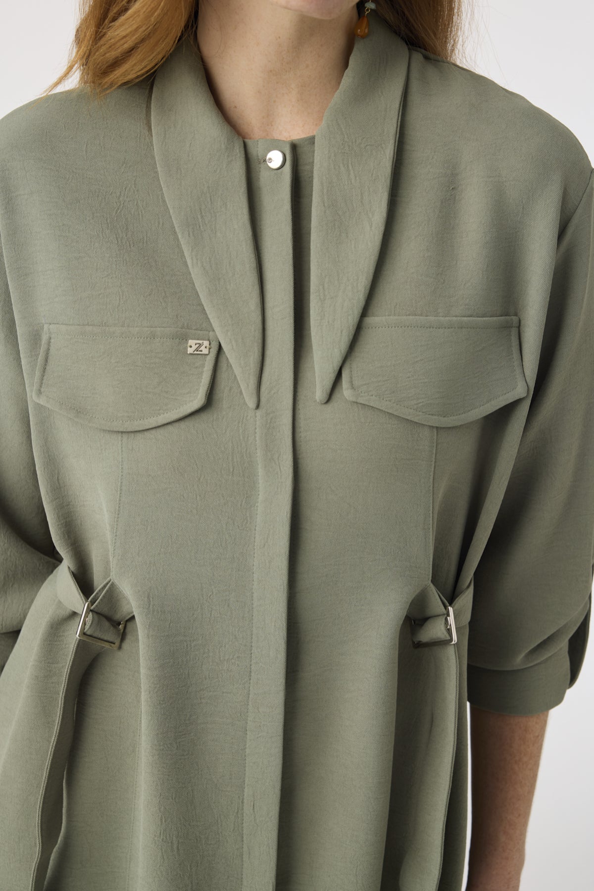 Low-Sleeve Patterned Tunic – Khaki
