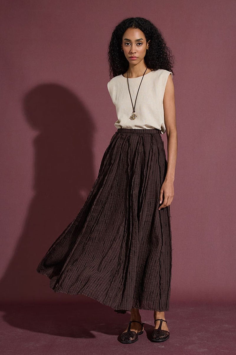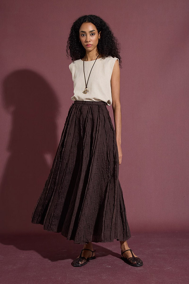 Tulle Skirt with Visible Stitching in Bitter Coffee