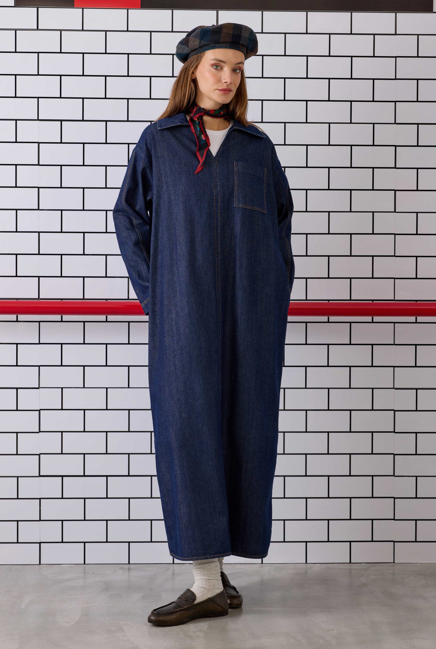 %100 Pamuk denim kumaştan üretilen uzun elbise, doğal yapısı sayesinde cilde dost ve nefes alabilir bir konfor sunar. Gün boyu rahat kullanım imkânı tanıyan tasarımı, denim kumaşın zamansız duruşuyla birleşerek modern ve şık bir görünüm kazandırır. Ürün bol bir kalıba sahiptir, manken üzerindeki kadar bol duruş istemeyenler bir beden küçük tercih edebilir. Ürünün kendi kumaşından kemeri mevcuttur, imaj görsellerinde kullanılan deri kemerler ürüne dahil değildir. Boy: 135,5 cm (Ürün boyu üretimler arası 1-5 cm değişebilir.) Kalıp Bilgisi: Göğüs Basen Kol Boyu Pazu S-M Beden:126 cm 127 cm 52 cm 44 cm M-L Beden: 130 cm 131 cm 53 cm 46 cm Manken Ölçüleri: Boy: 176 cm Göğüs: 84 cm Bel: 62 cm Basen: 88 cm Mankenin Üzerindeki Beden: S-M