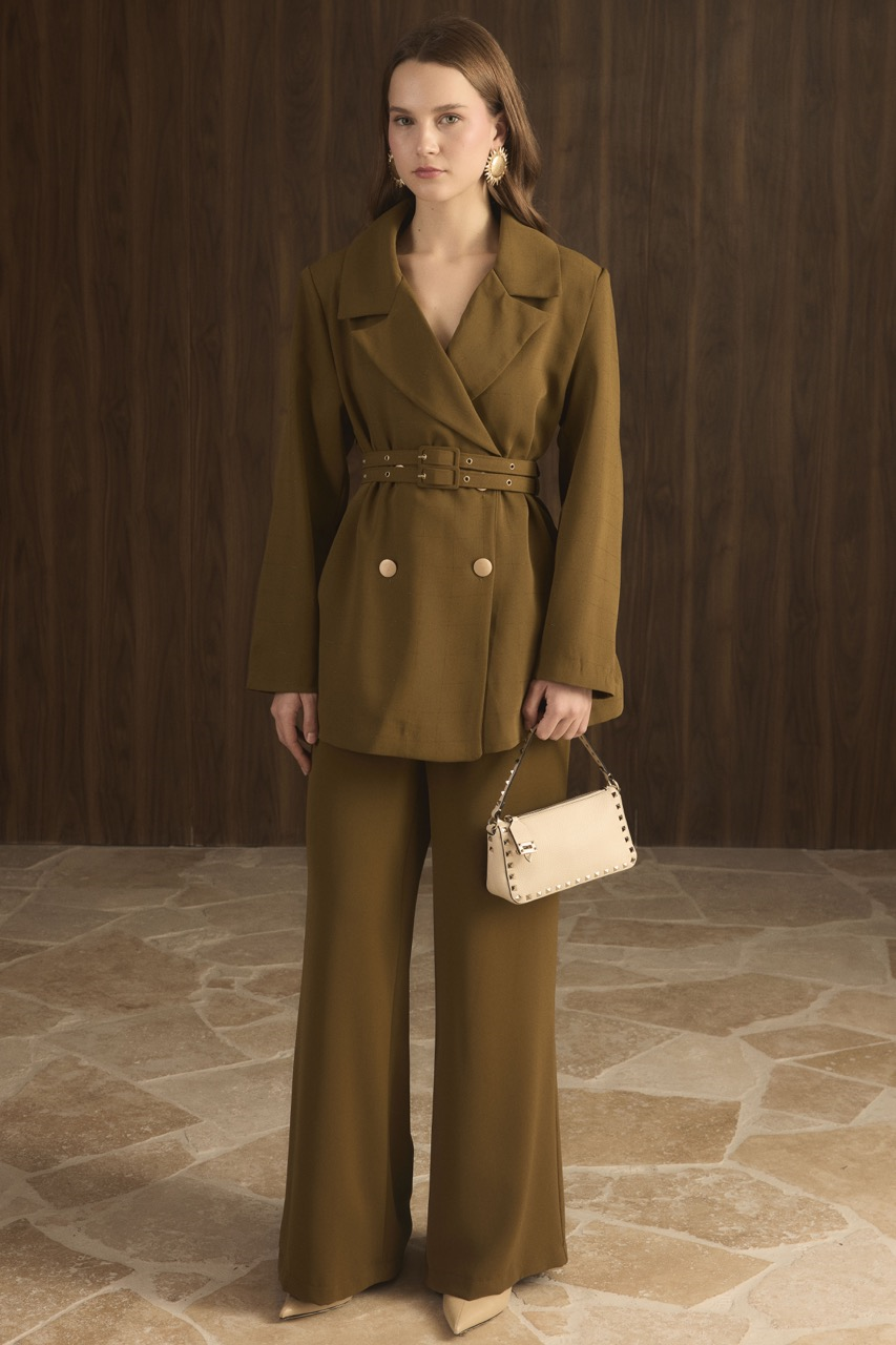 This sophisticated Veranka belted blazer set in olive green combines timeless elegance with modern style. Perfect for both professional settings and casual outings, the tailored fit and versatile design make it a must-have addition to your wardrobe.