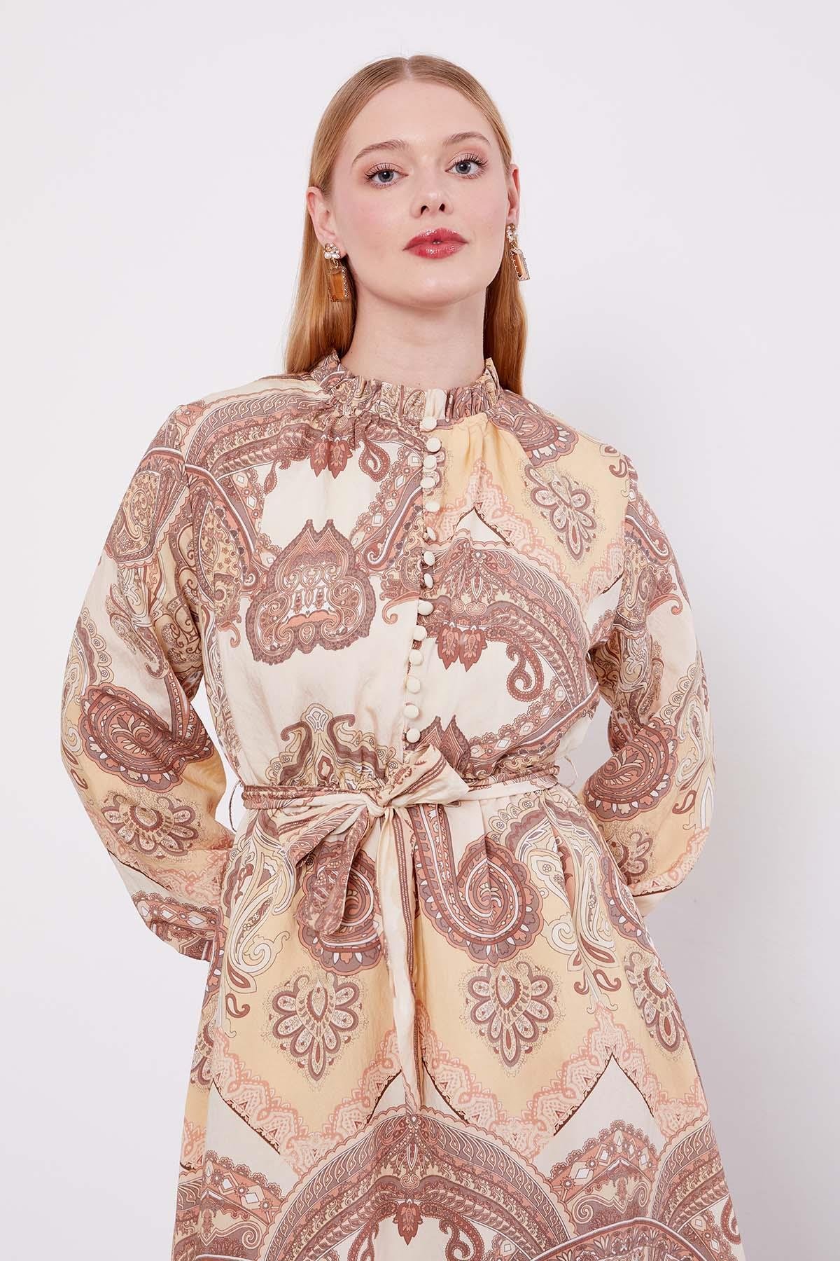 Vizon Etnik Desenli Elbise