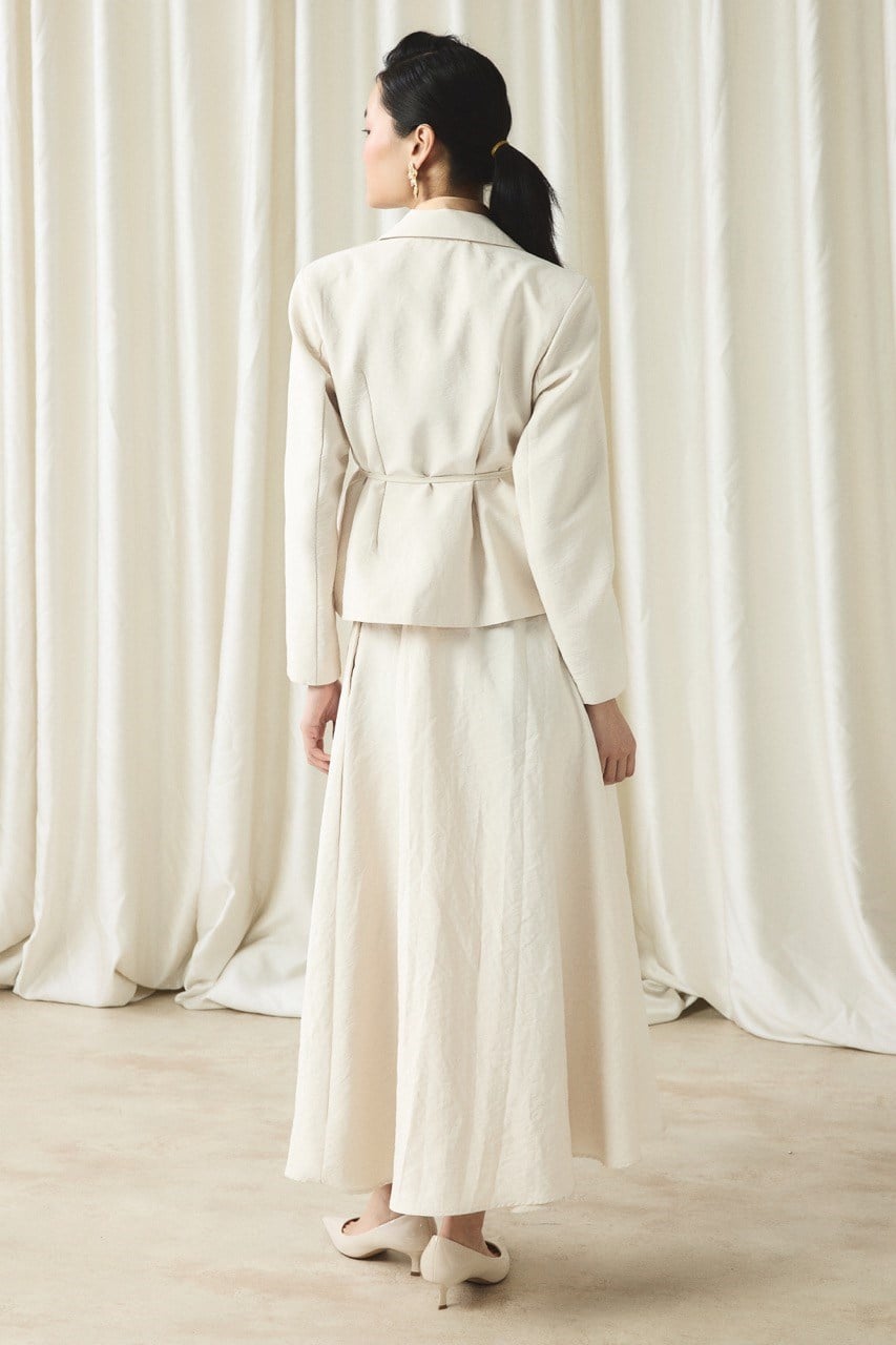 Waist-Fitted Jacket Skirt Set – Beige
