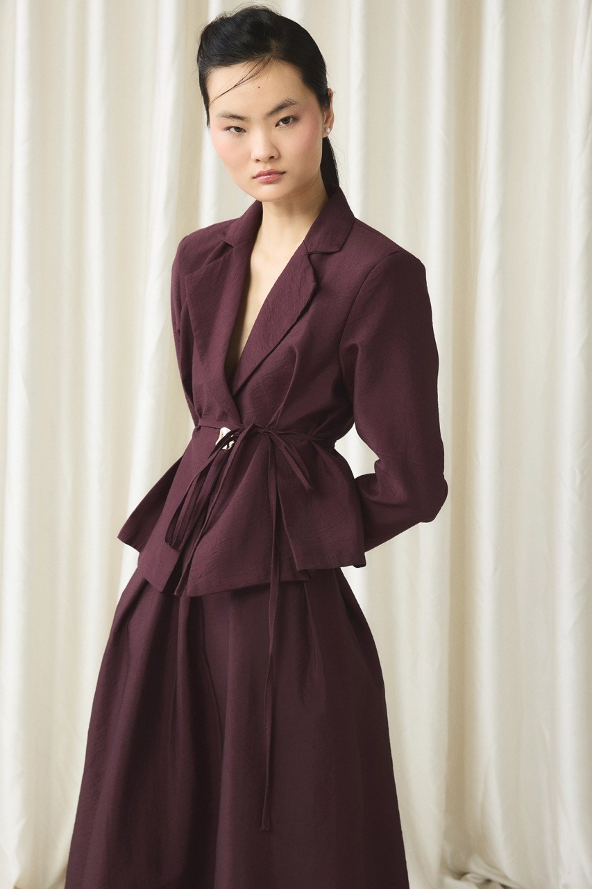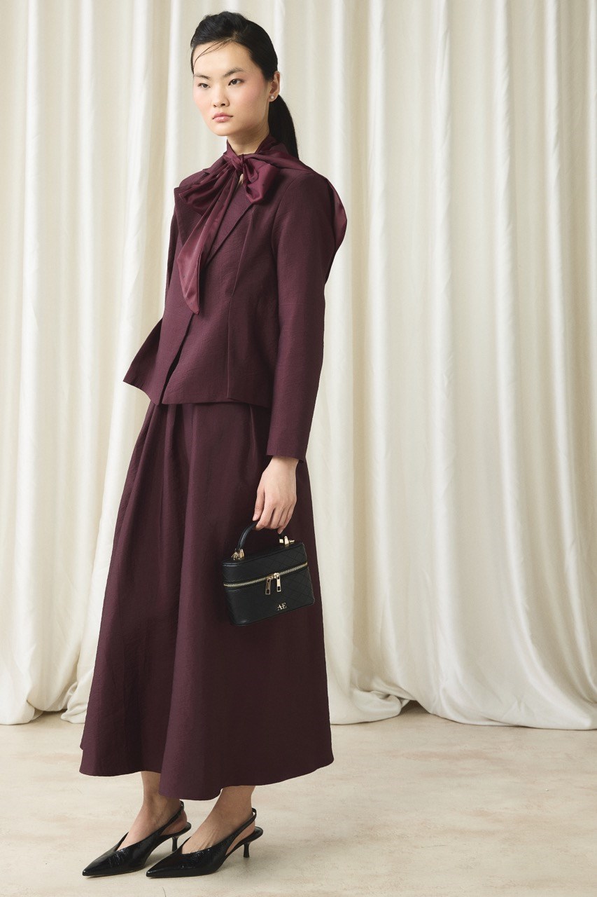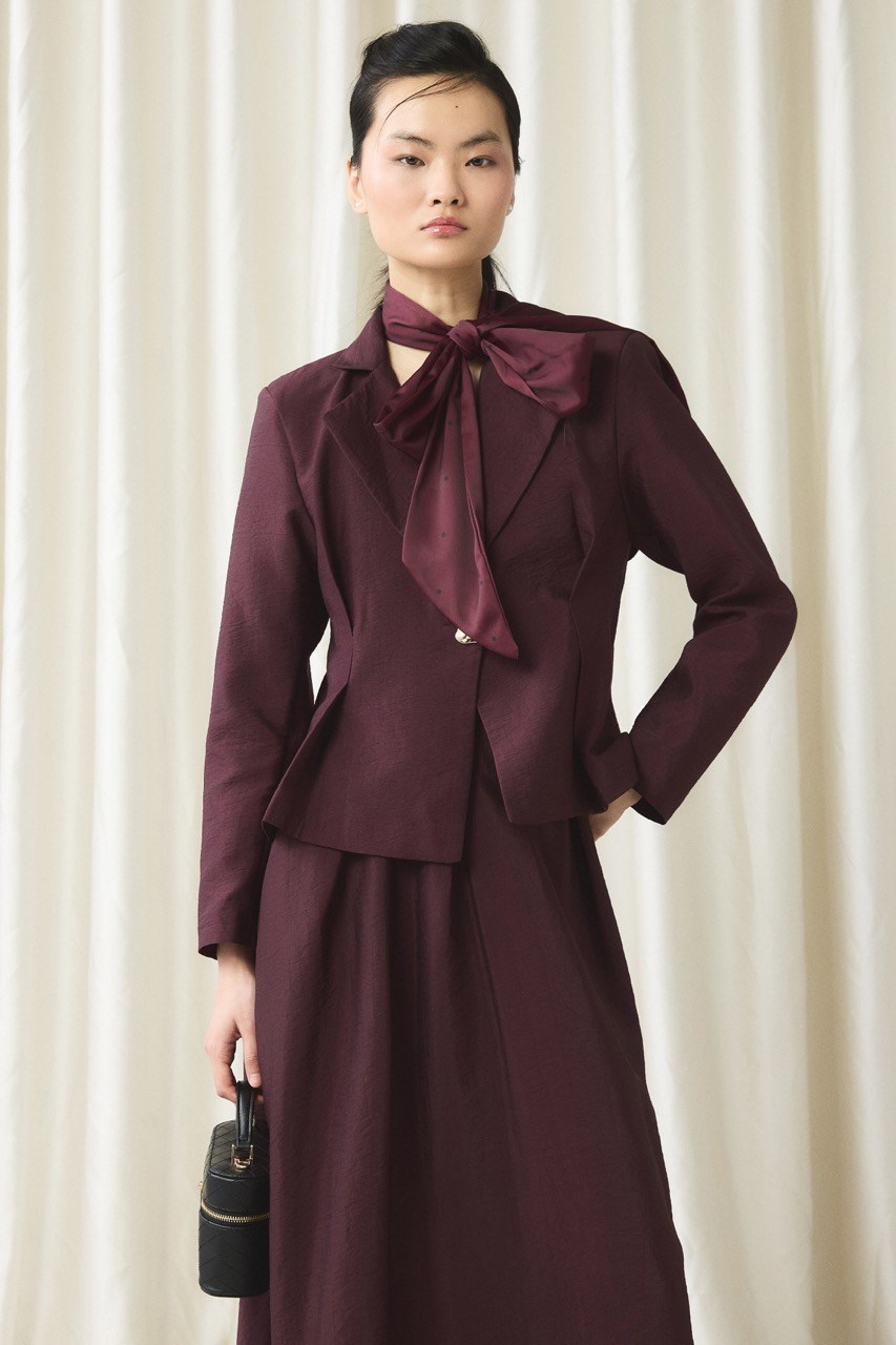 Waist-Fitted Jacket Skirt Set – Burgundy