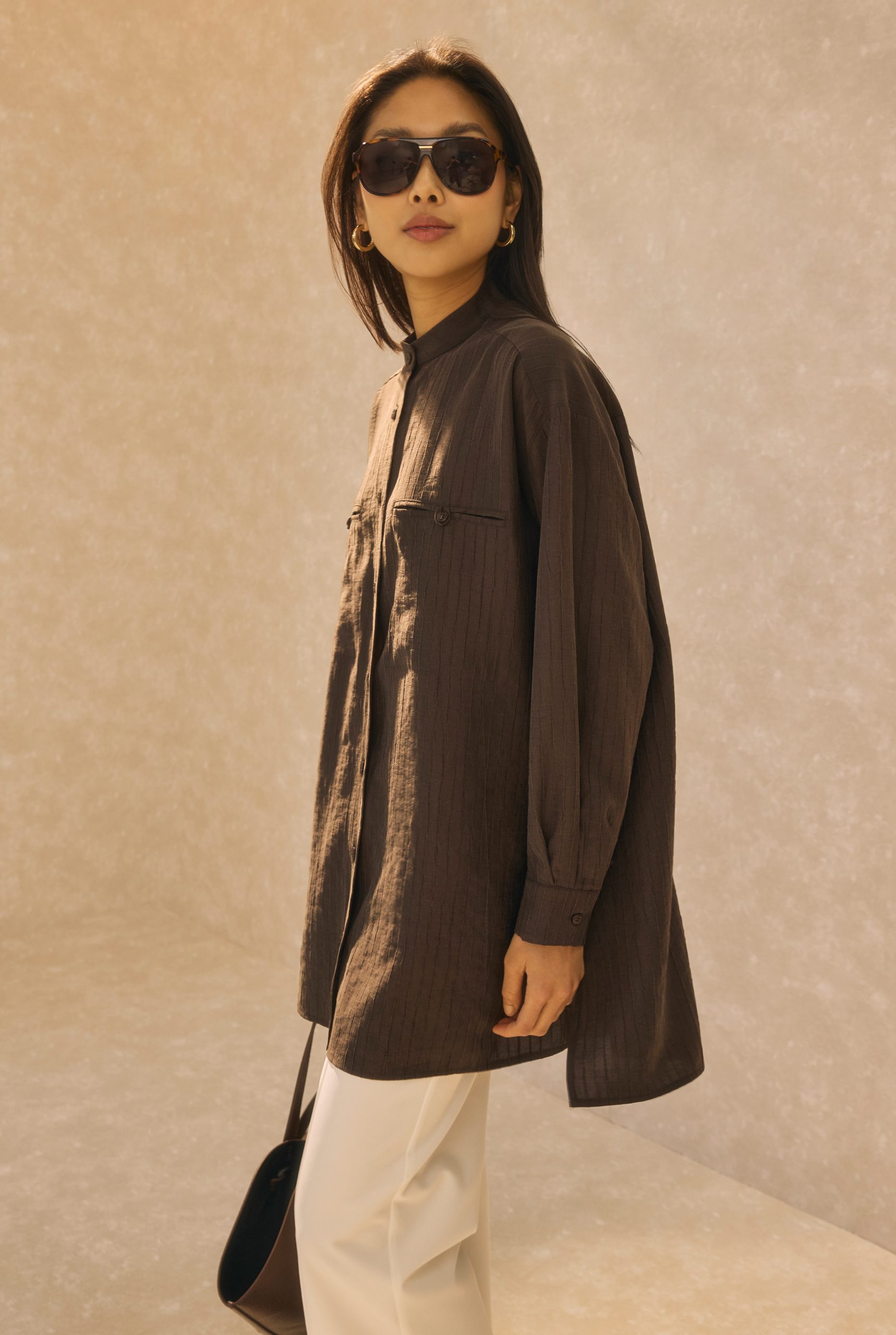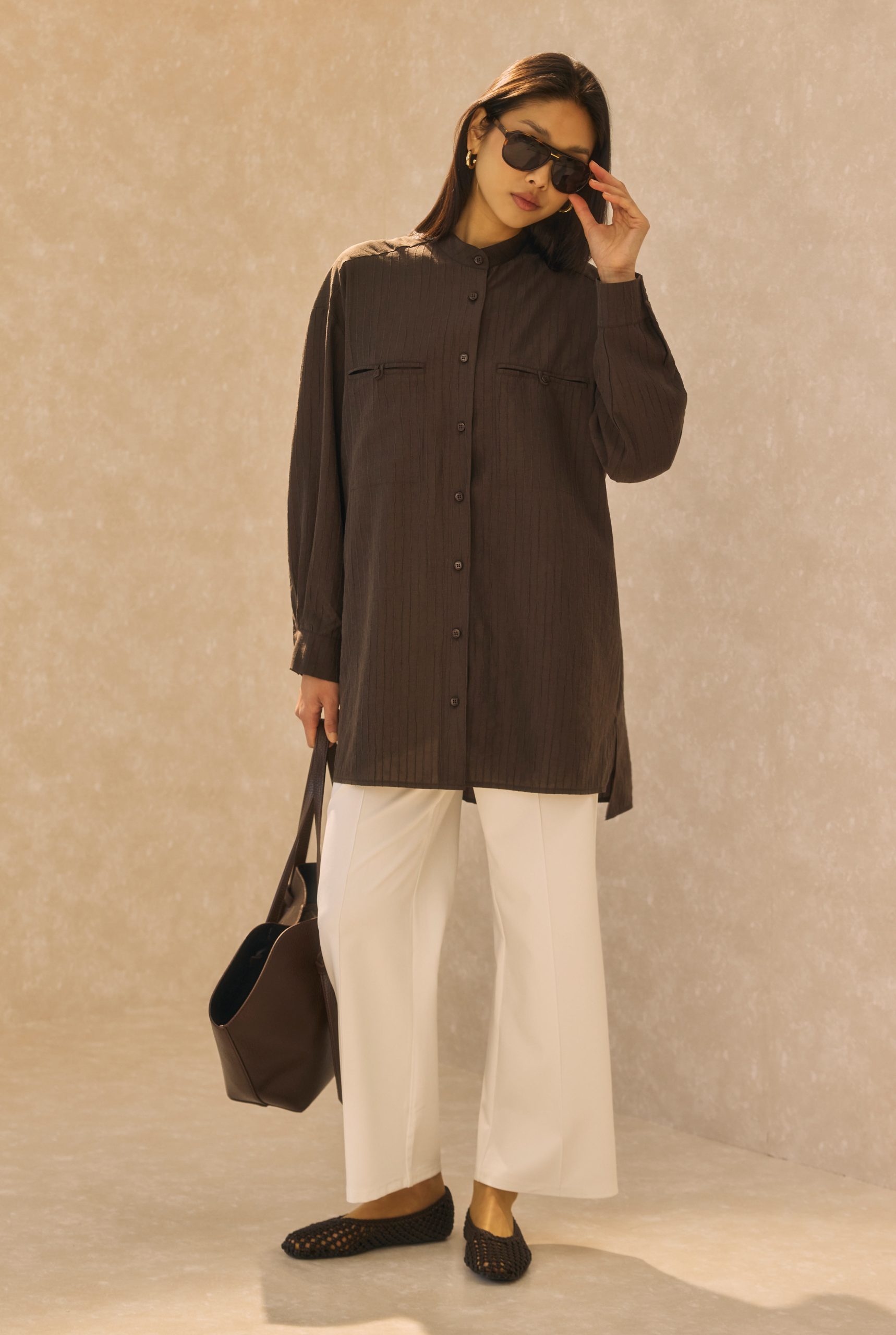 Made from a blend of 89% Tencel and 11% PES, this welt pocket detail shirt offers a soft, smooth, and breathable texture thanks to the Tencel. It provides all-day comfort with its natural moisture management properties and leaves a skin-friendly feel. The 11% polyester (PES) content adds durability, wrinkle resistance, and shape retention to the shirt. The welt pocket detail adds a modern and stylish touch to the design, making it easily preferred for daily or business combinations.
