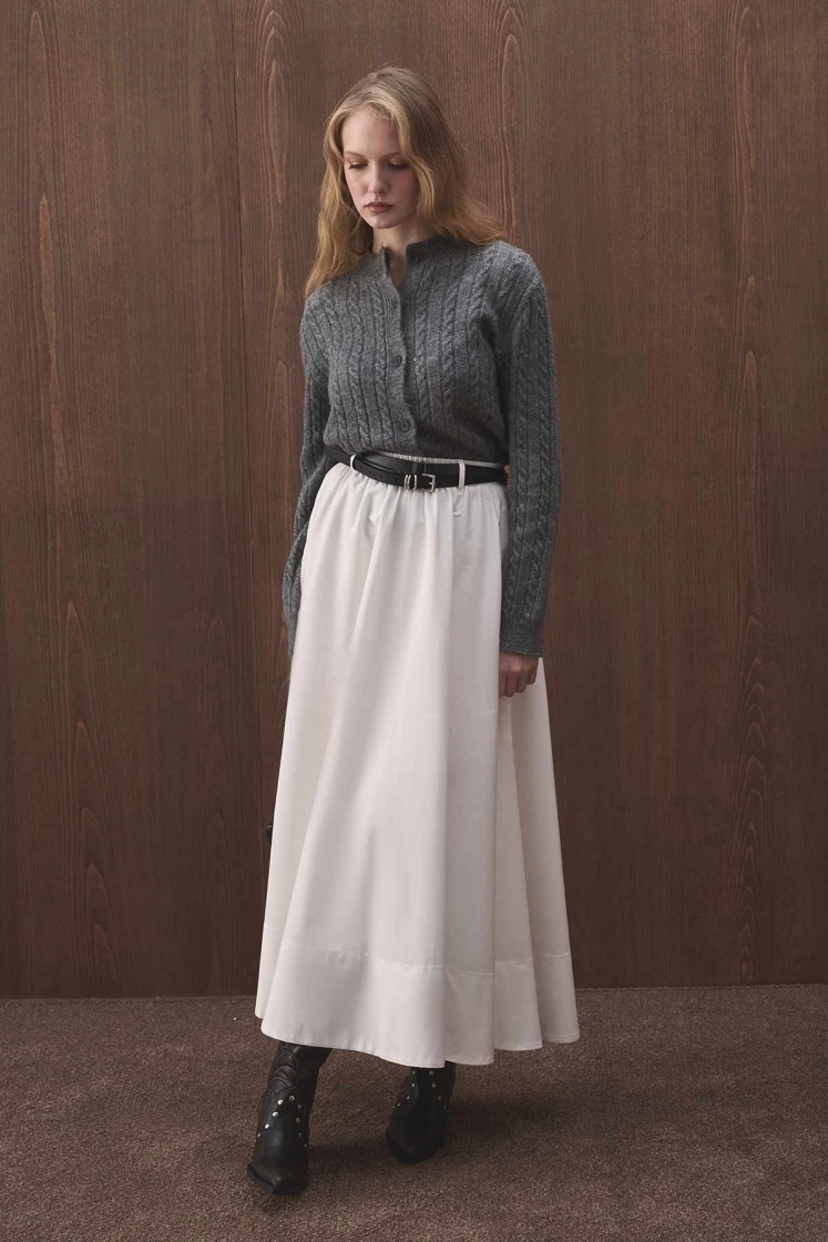 WHITE COTTON SKIRT WITH ELASTIC WAIST FEATURES
