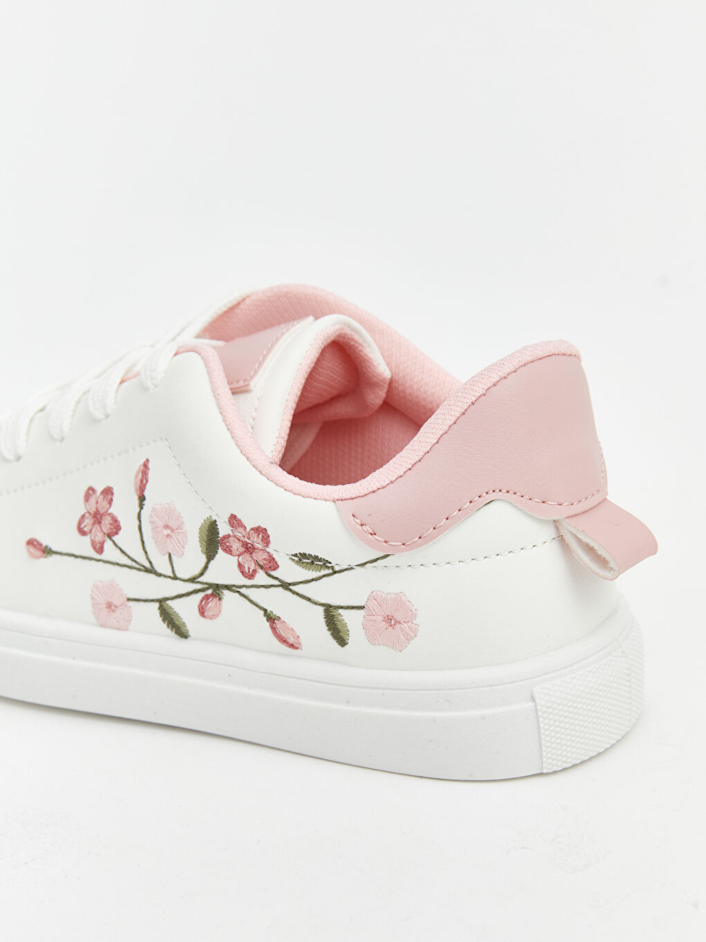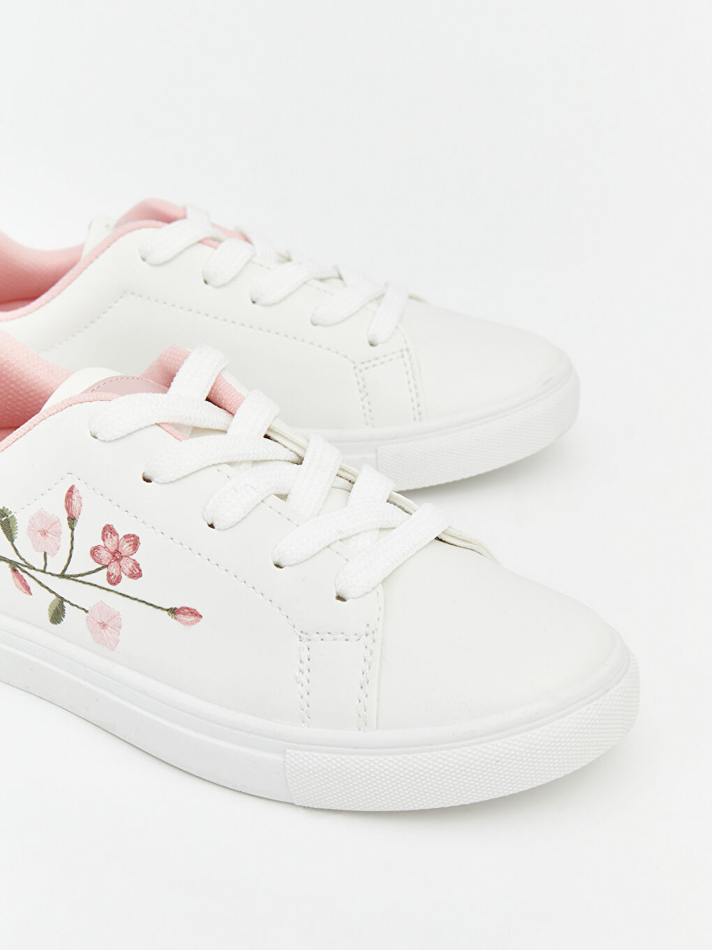 Tags: children's footwear, embroidered shoes, floral pattern, girls sneakers, lace-up, sports shoes, synthetic leather, white shoes