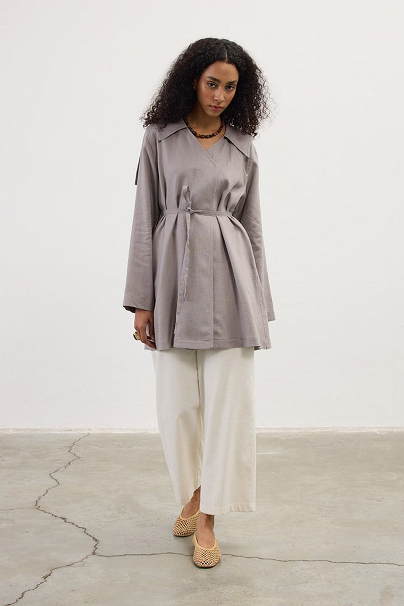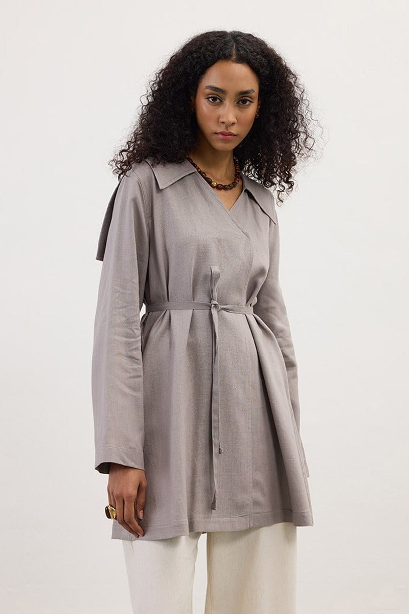 Tags: linen jacket, summer wear, V-neck, wide collar, women's fashion