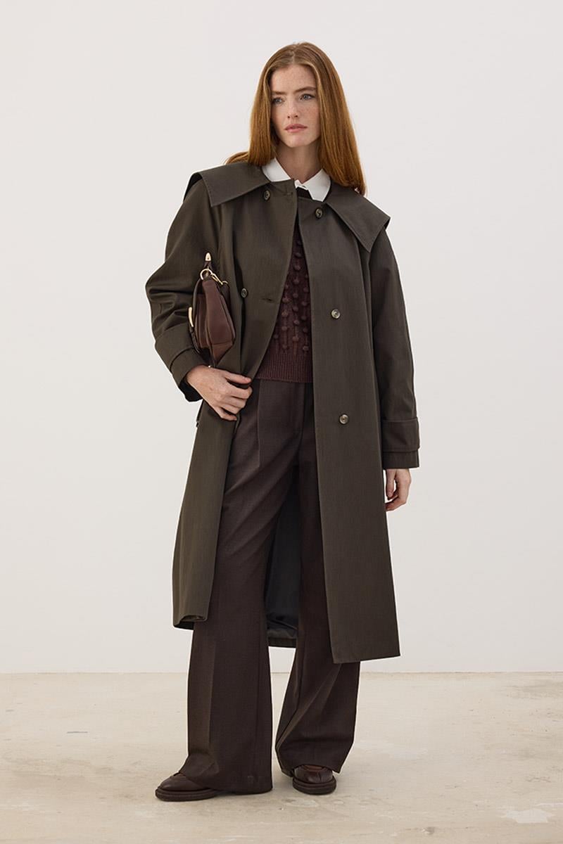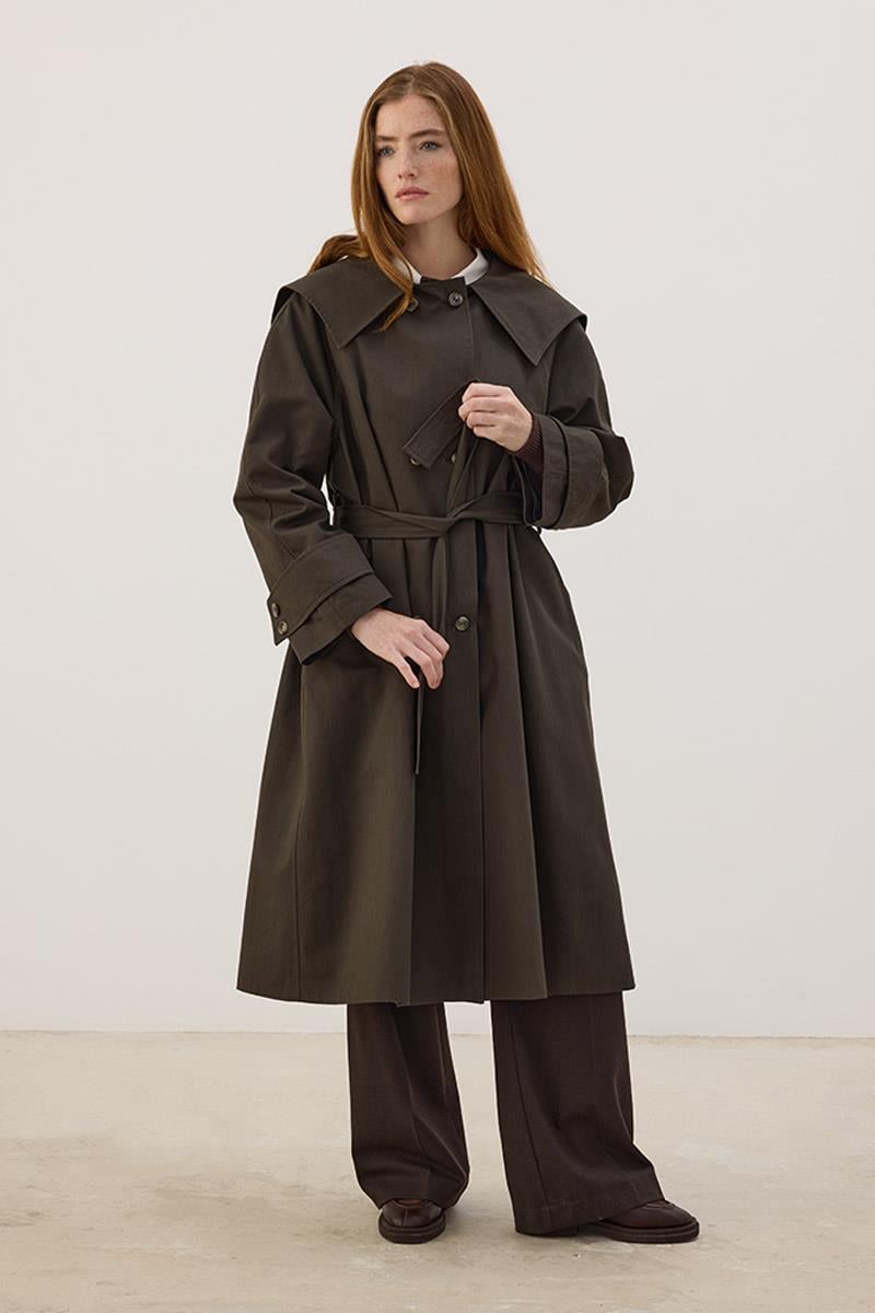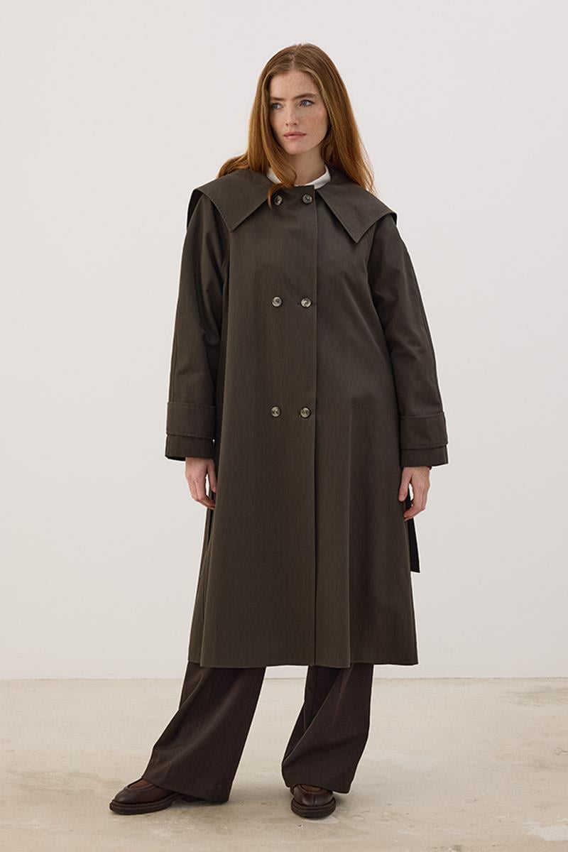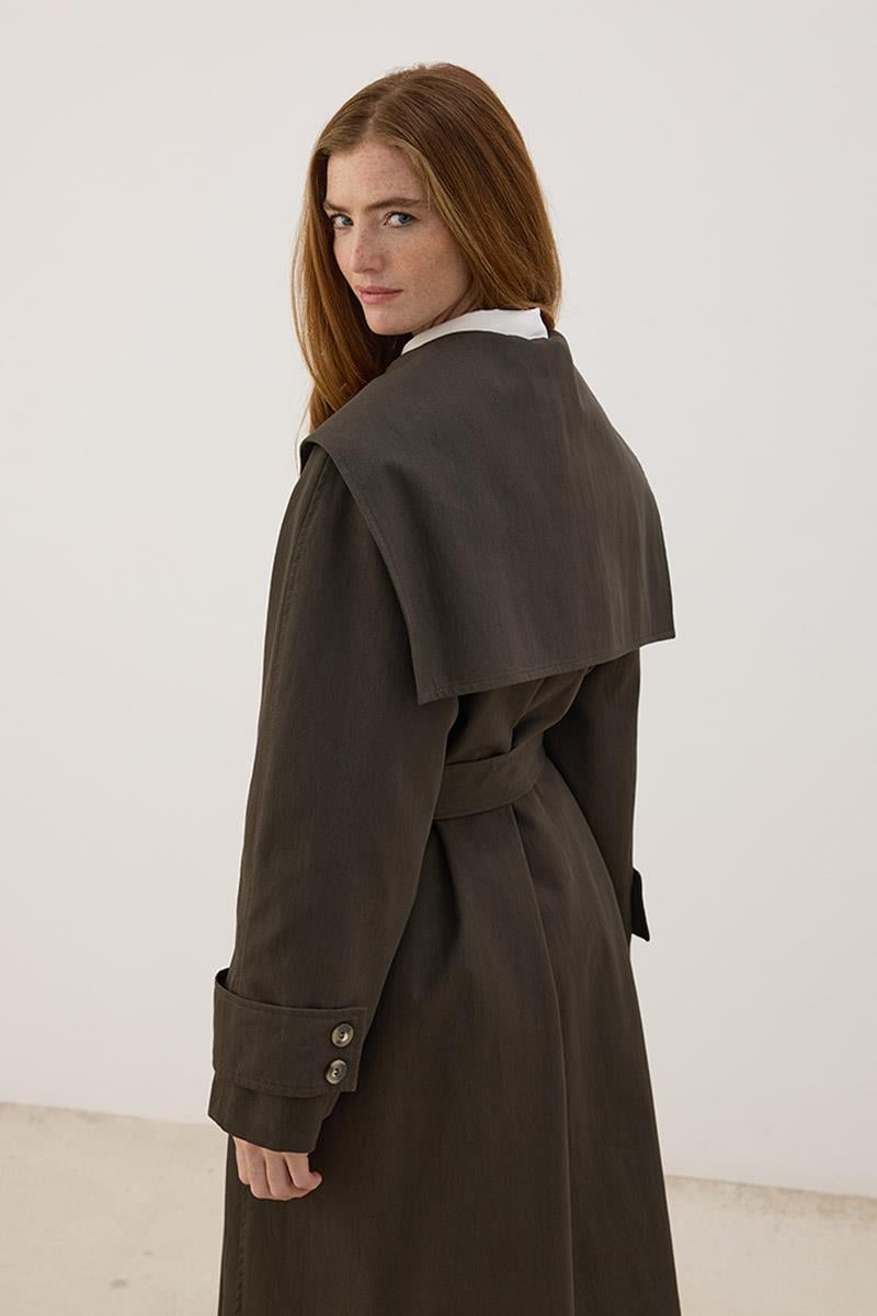 Wide Collar Long Trench Coat Anthracite