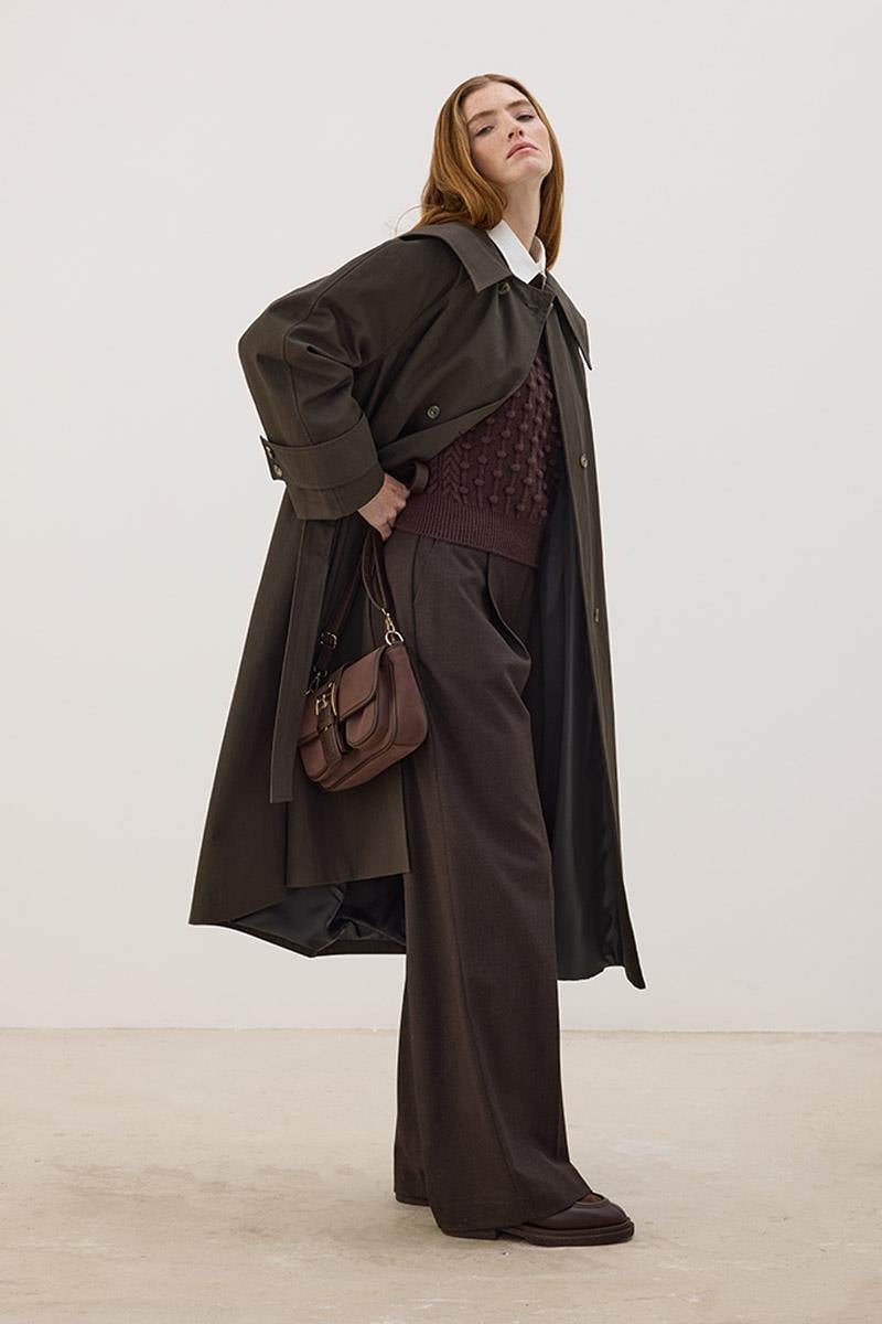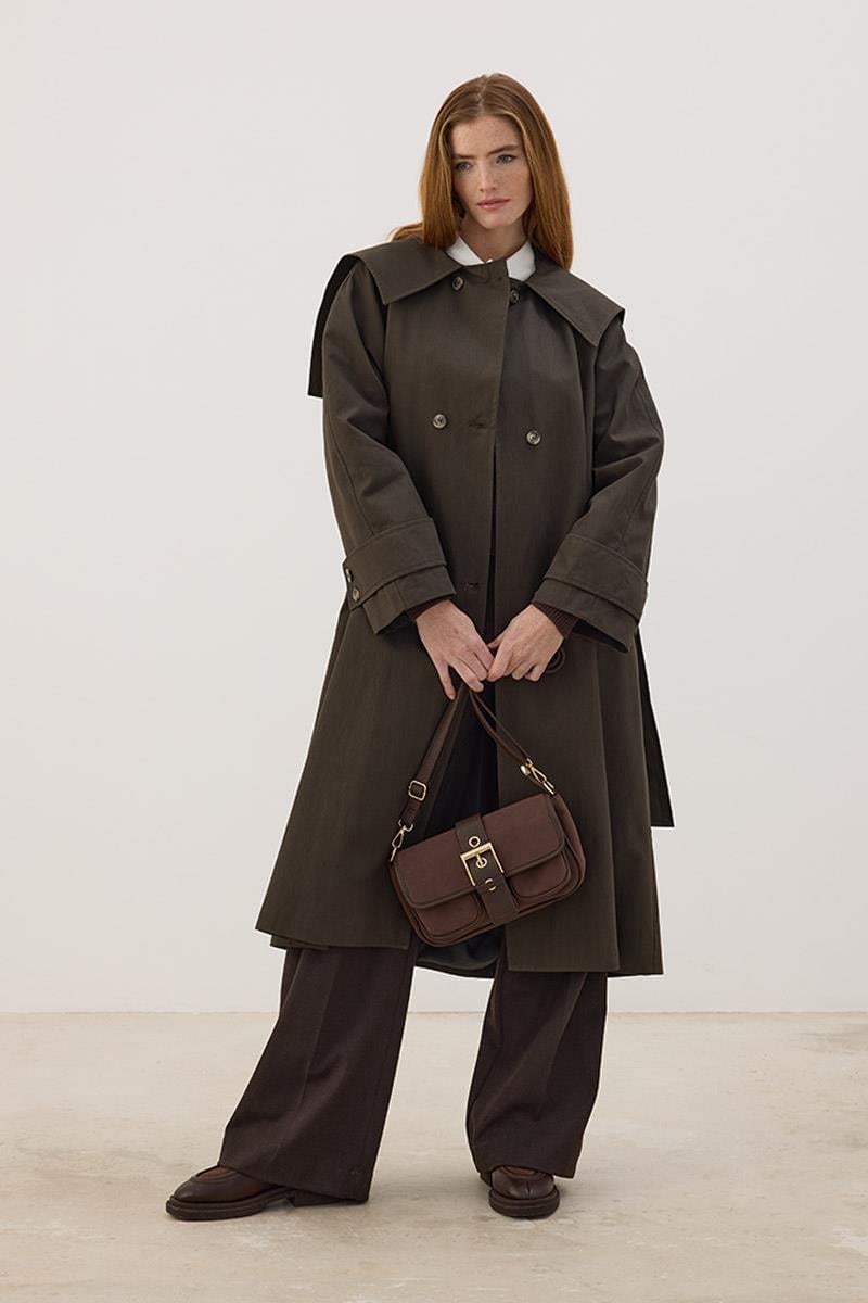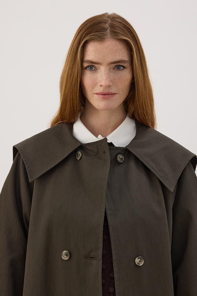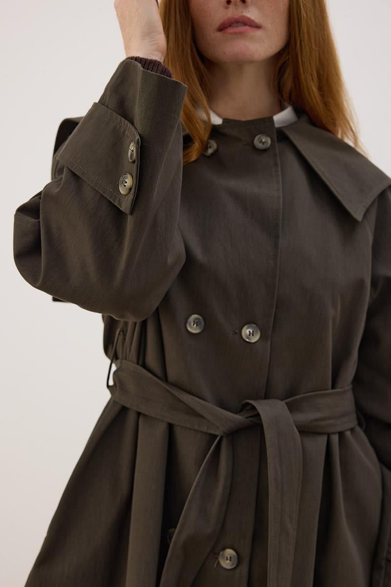 Wide Collar Long Trench Coat Anthracite