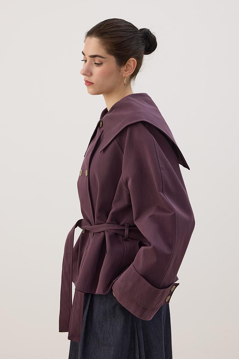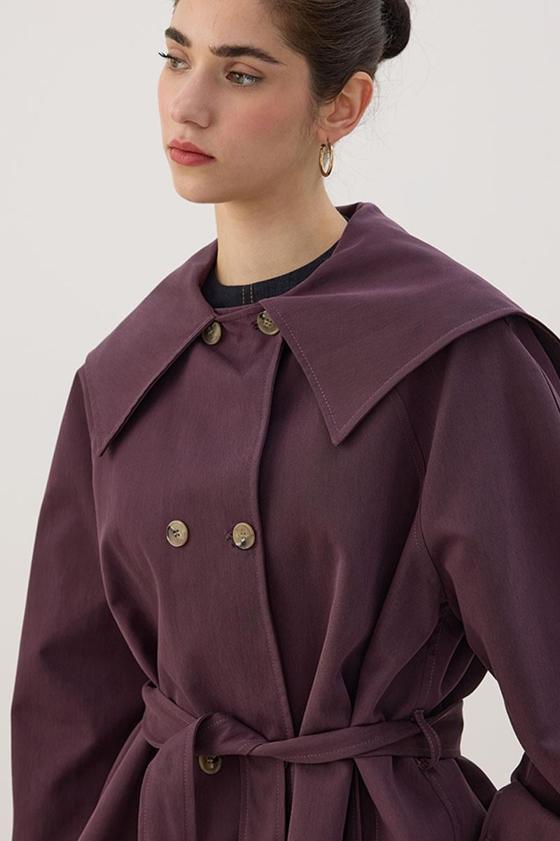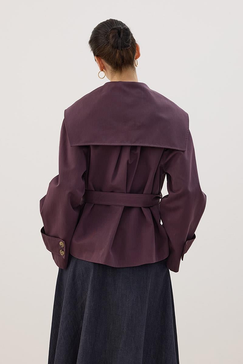 Wide Collar Short Trench Coat in Mulberry