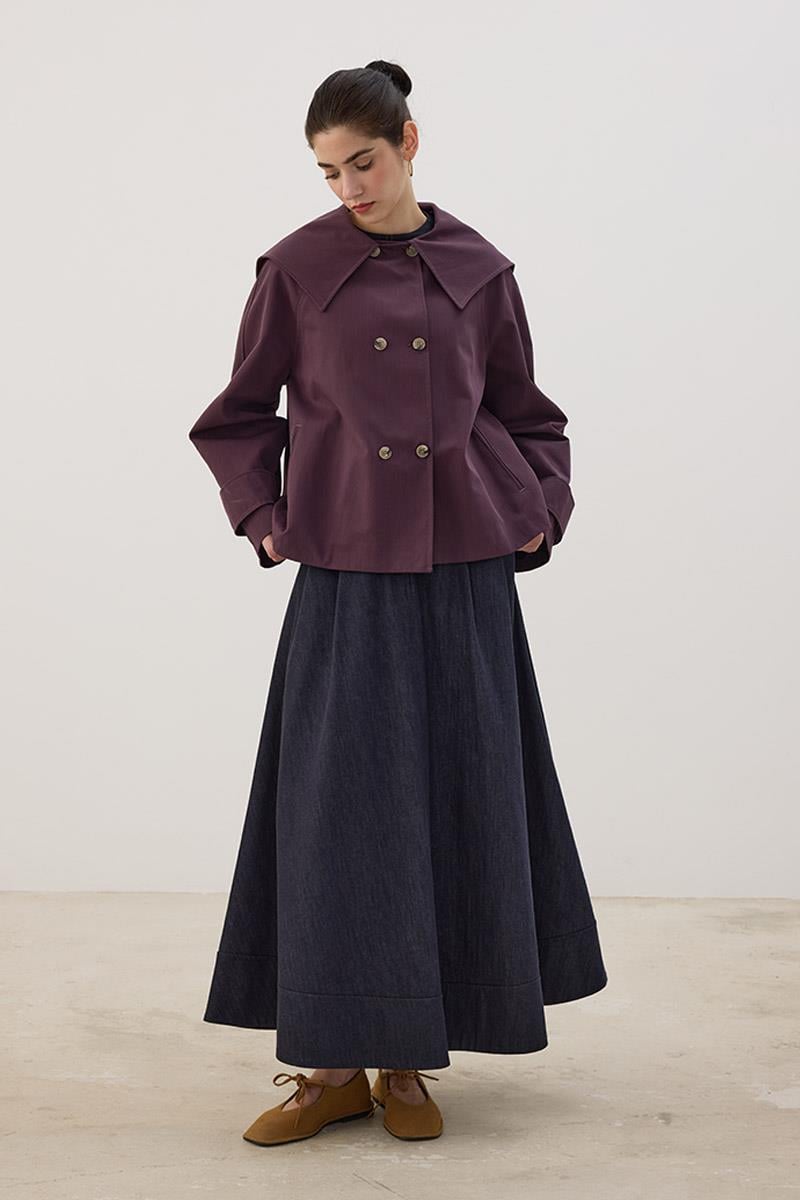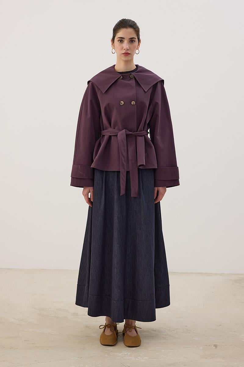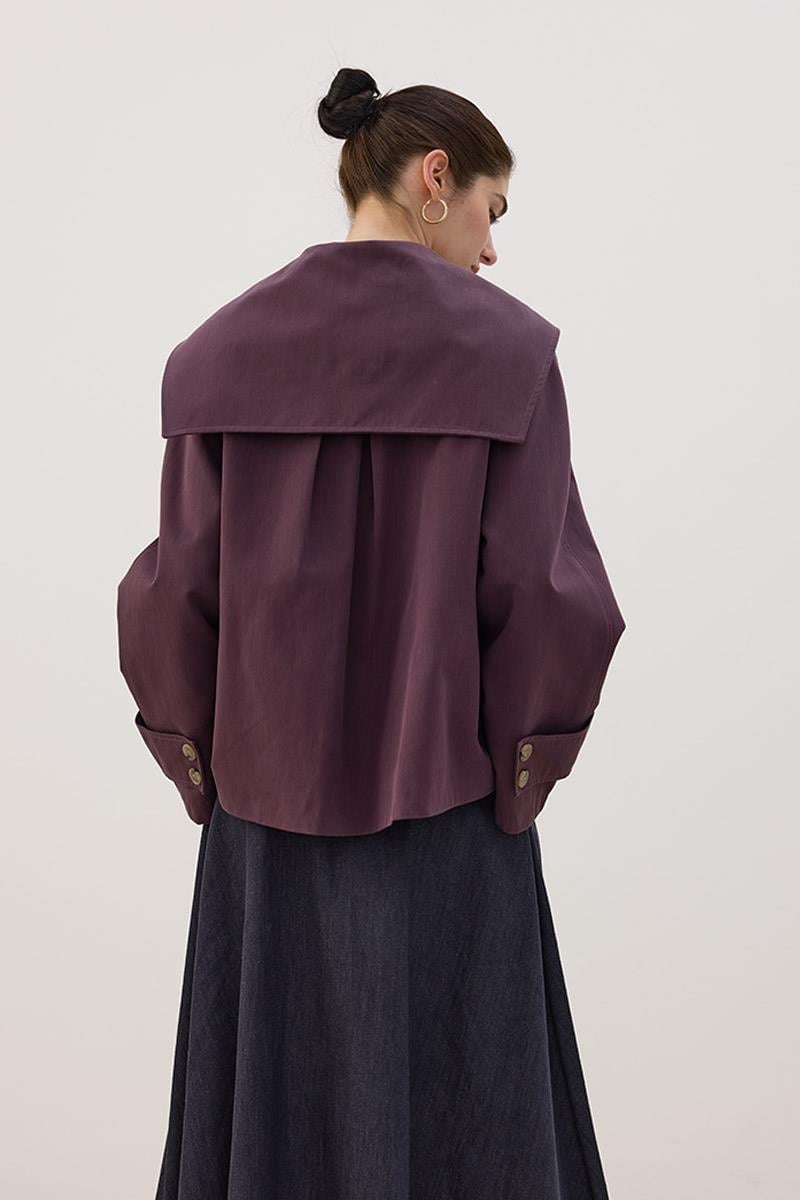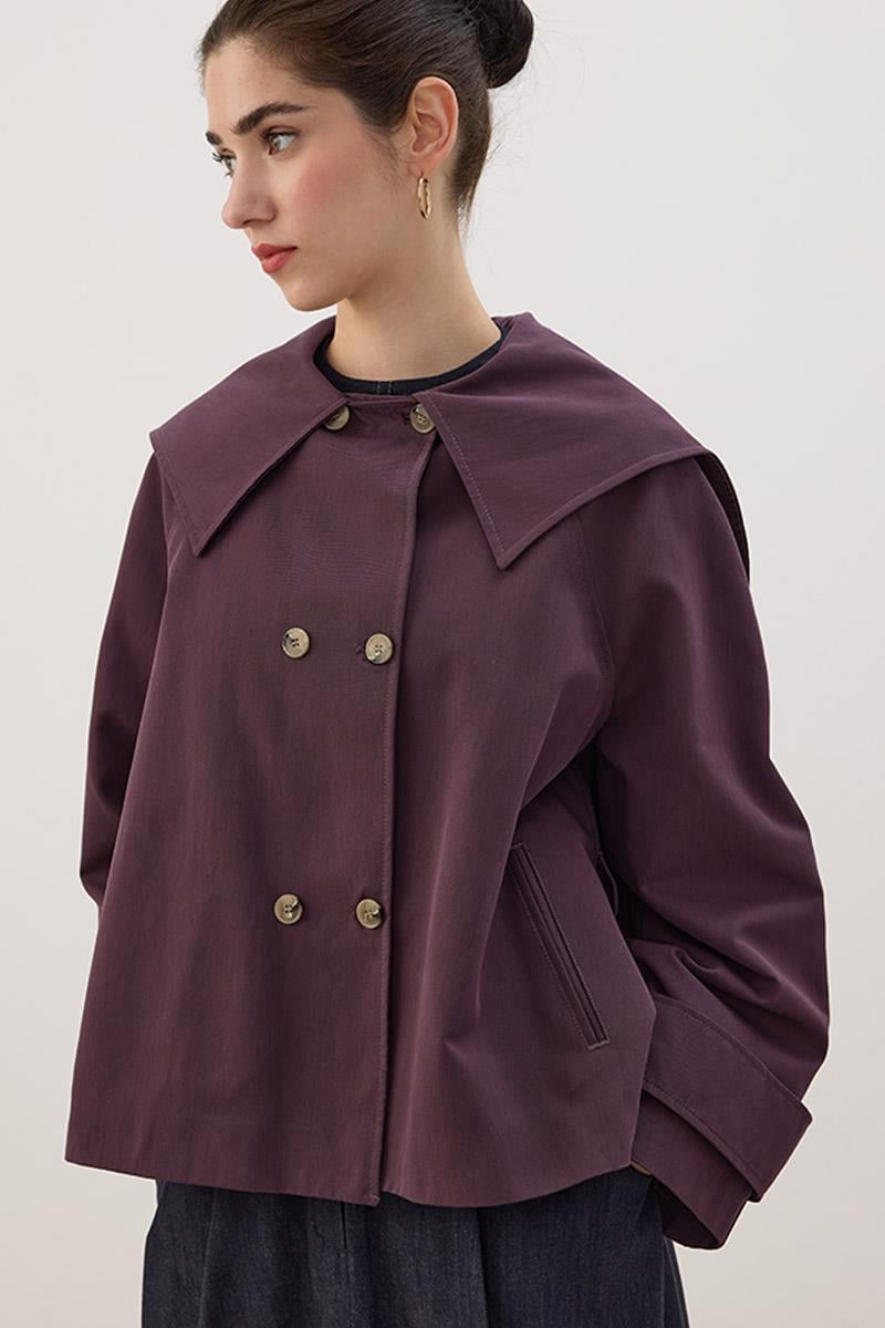 Wide Collar Short Trench Coat in Mulberry