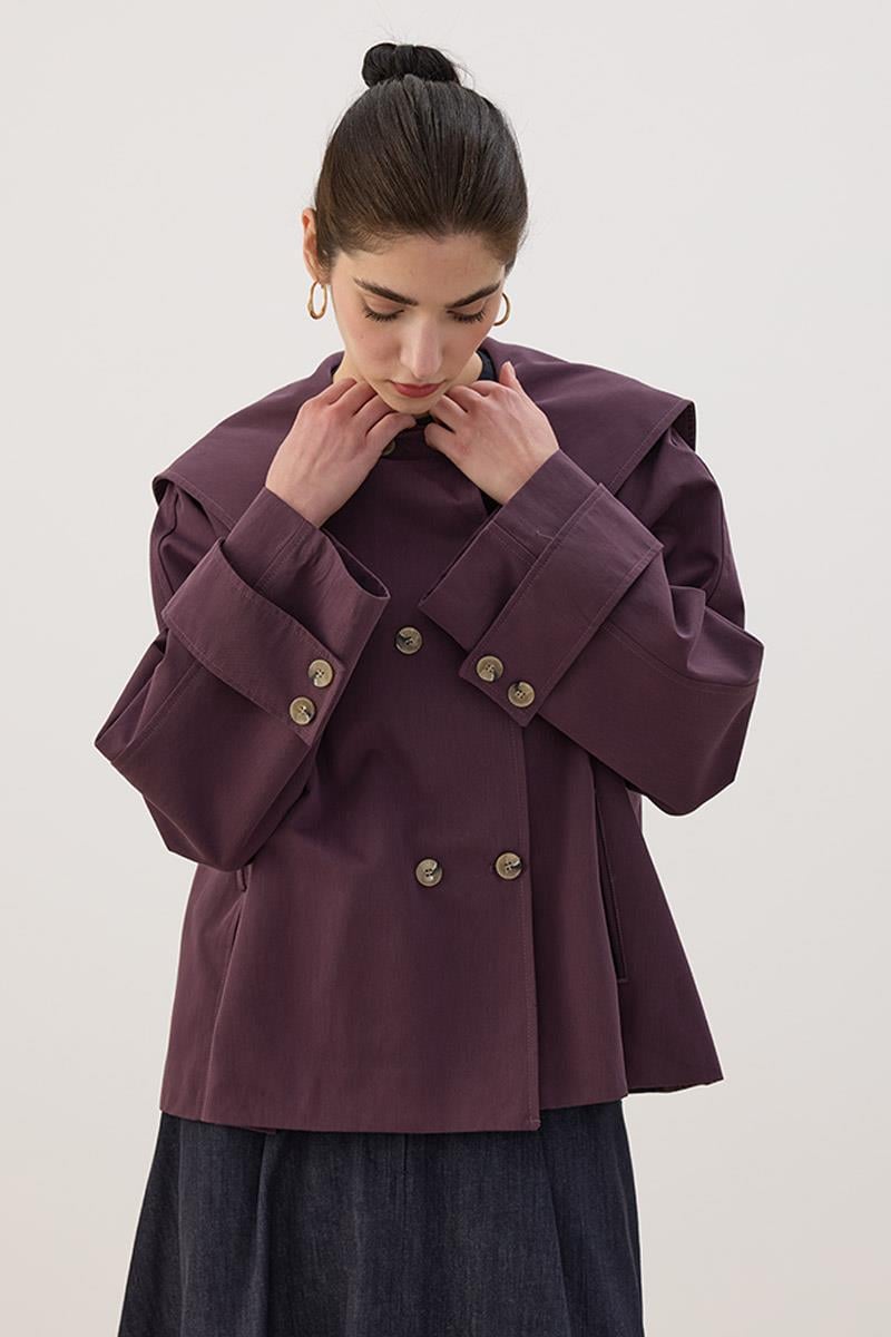 Be the first to review “Wide Collar Short Trench Coat in Mulberry” Cancel reply