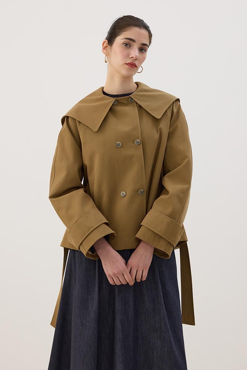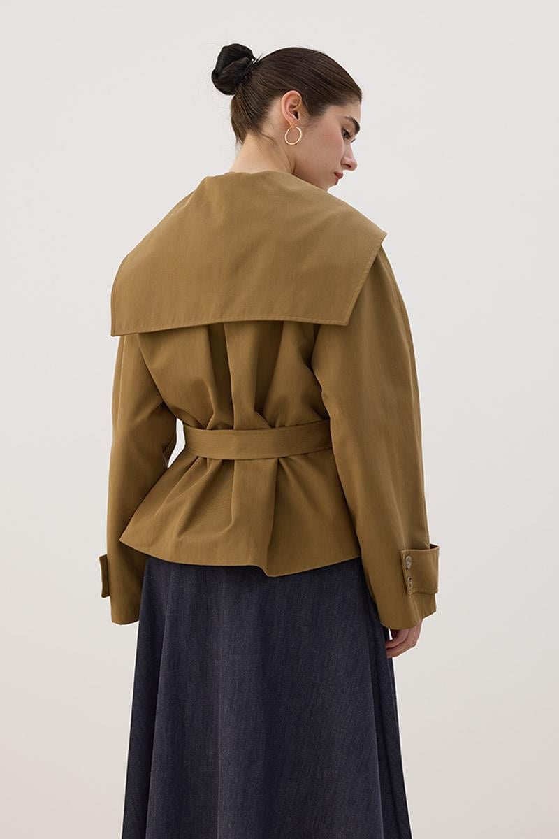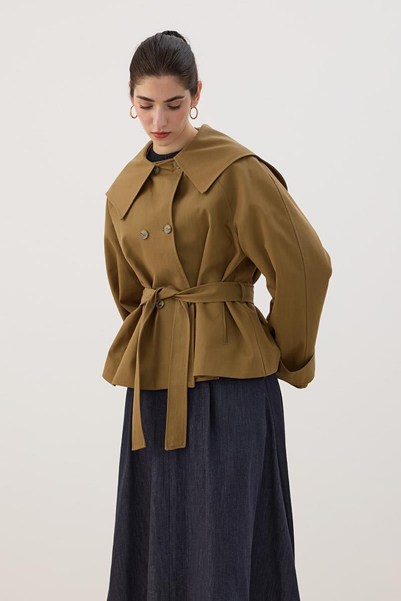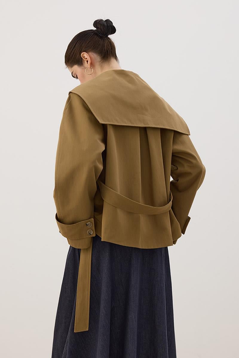 Wide Collar Short Trench Coat in Olive Green