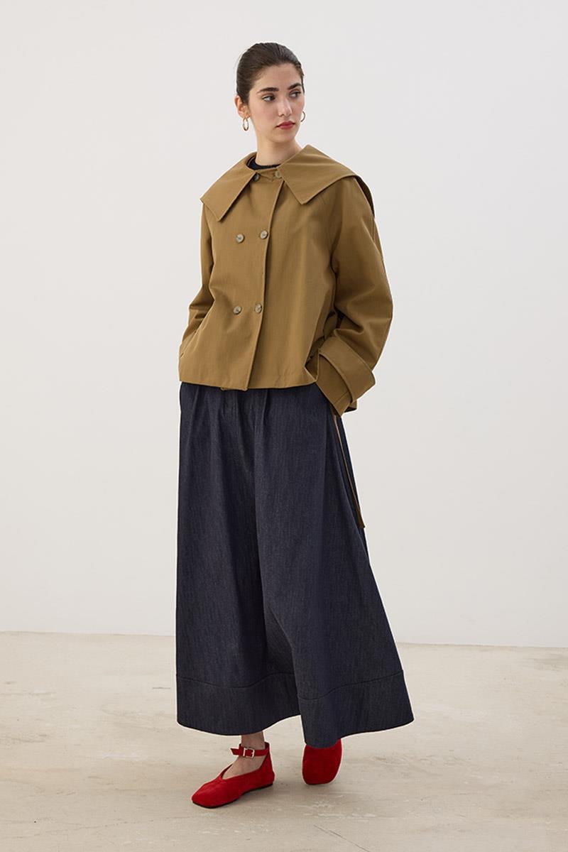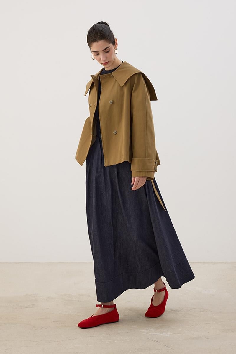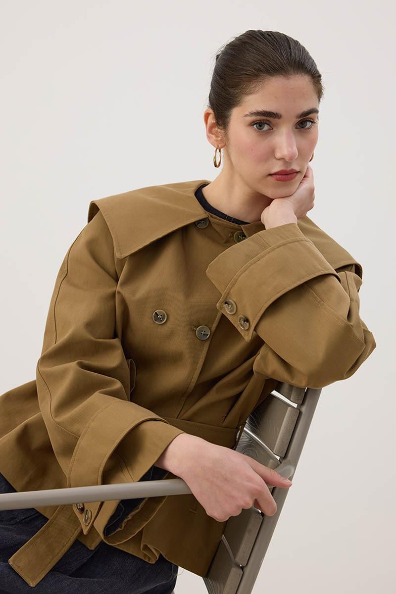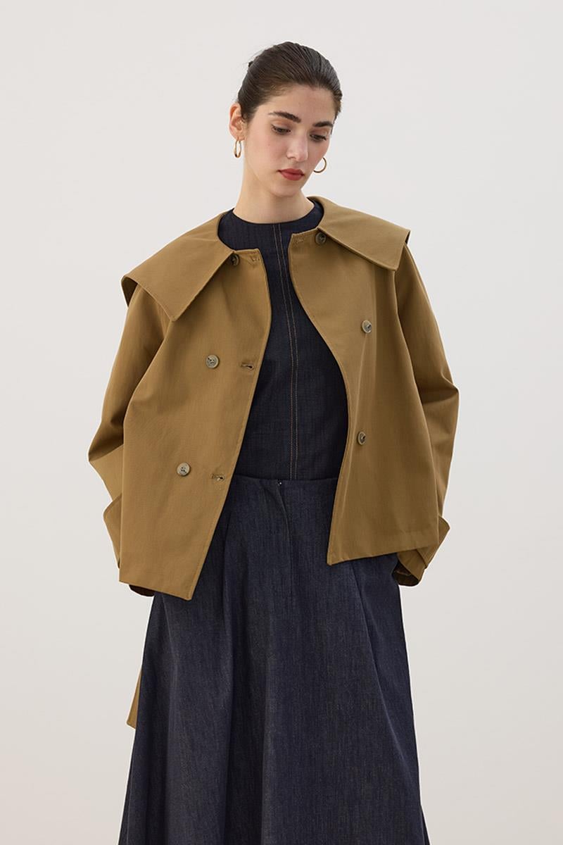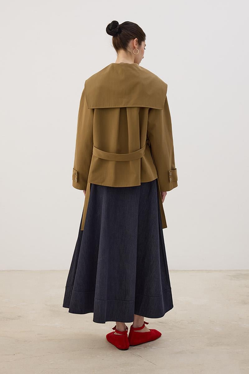 Wide Collar Short Trench Coat in Olive Green