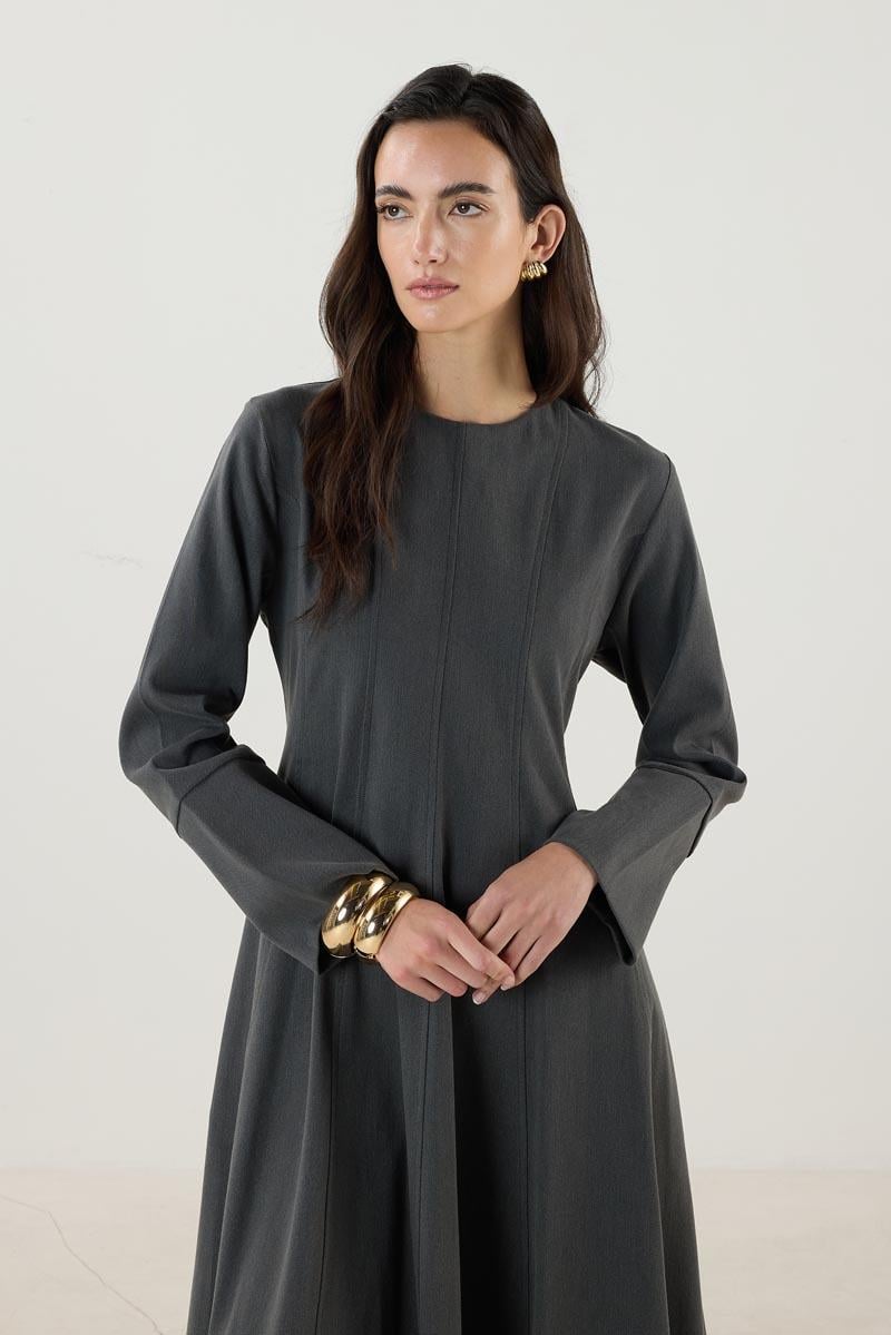 Be the first to review “Wide-Cuffed A-Line Dress in Anthracite” Cancel reply