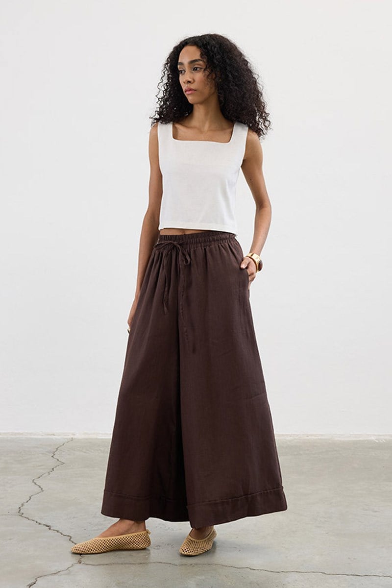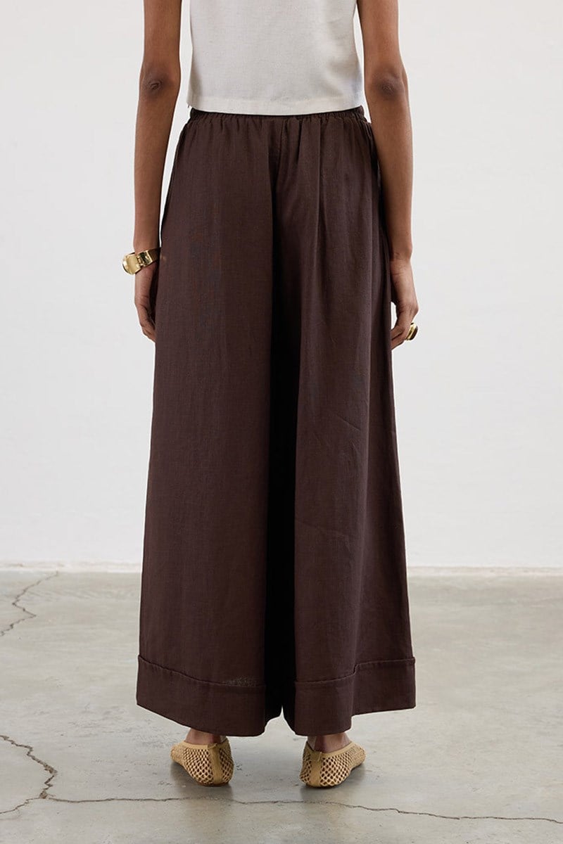 Wide-Leg 100% Linen Pants in Bitter Chocolate