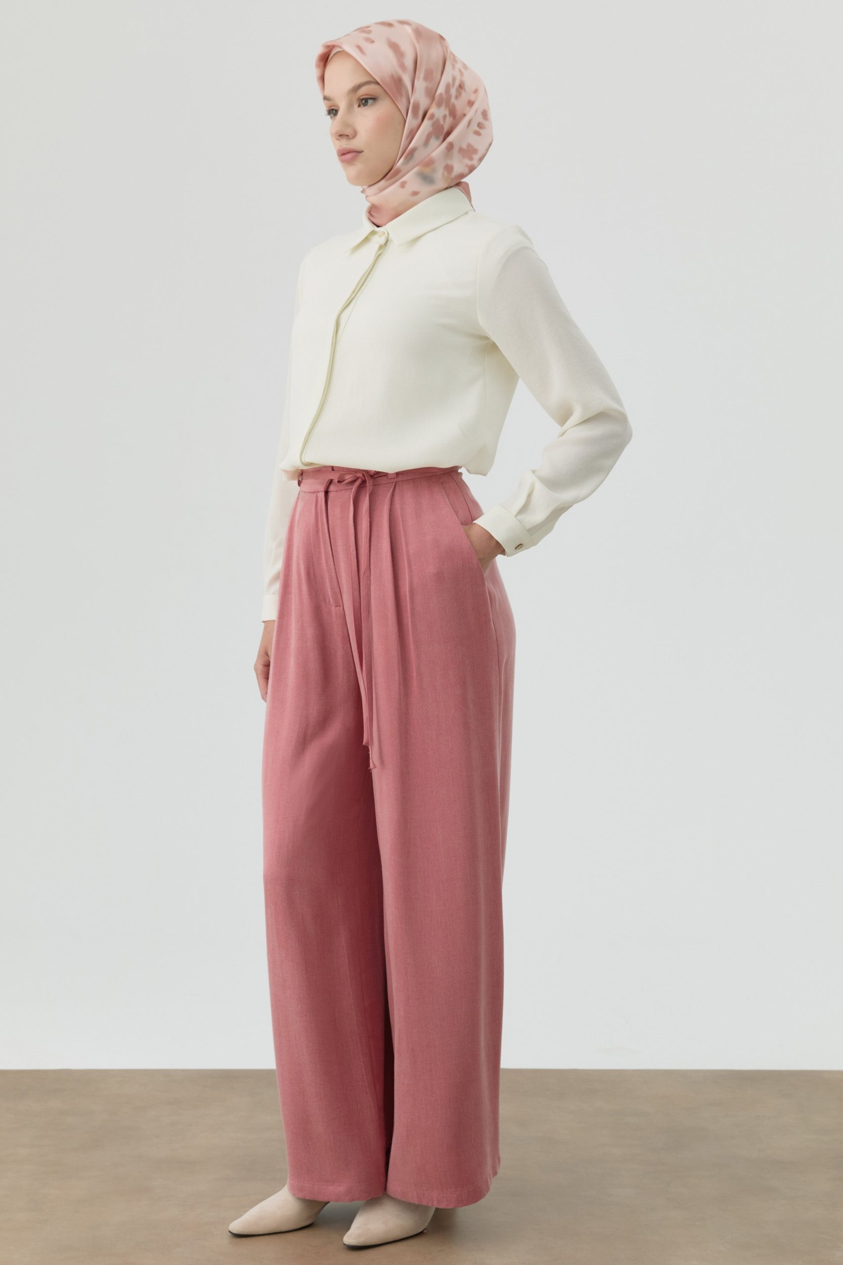 Highlight your waist with these high-waisted trousers featuring a removable belt detail. The wide-leg cut offers a modern and free silhouette.