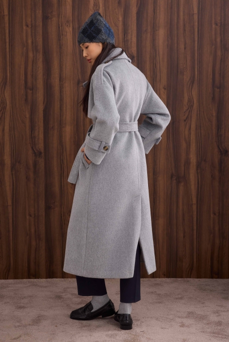 Featuring a 425g coated fabric composition, this coat offers durability, shape retention, and resistance to wrinkles. Its coated texture provides warmth and comfort in cold weather. With an elegant cut and belt detail, this long coat creates a feminine silhouette that adds a chic touch to both daily wear and urban styles. The windproof design lends a modern, dynamic look, while the lined interior ensures smoothness and wearing comfort. Its functional details and timeless design make it a piece you’ll enjoy in your wardrobe for years to come. We recommend selecting your usual size.