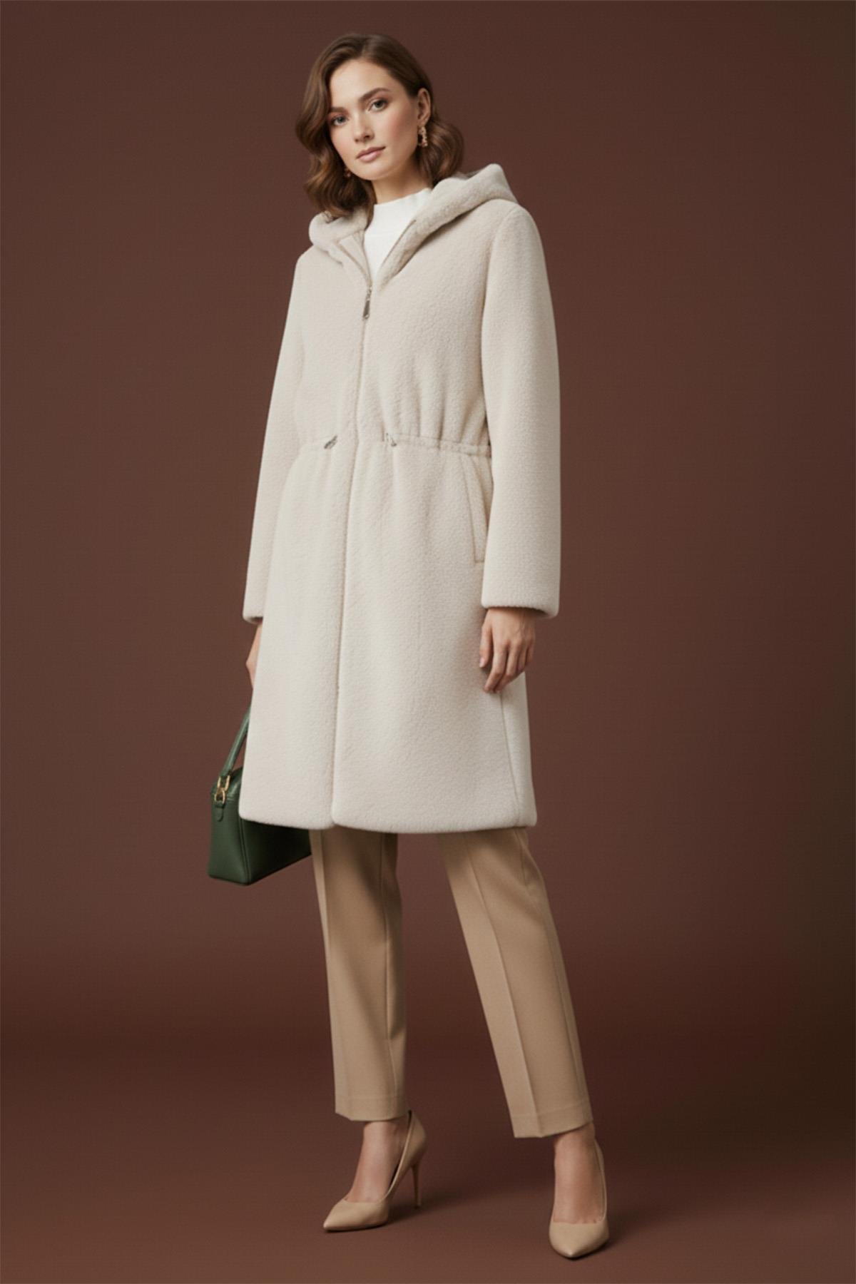 Description: With its fleece fabric and hood detail, this coat provides warmth and comfort on winter days. The elastic waistband offers a body-hugging fit. Functional details and modern design complement everyday outfits. Minimal and sophisticated lines blend classic and contemporary style concepts. It offers a stylish and comfortable wearing experience in any setting.