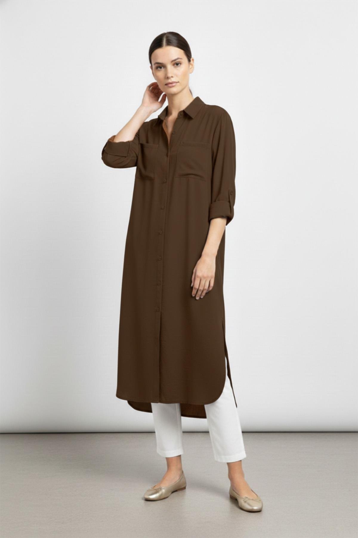 Women’s Long Button-Down Pocket Oversize Shirt Dress -10764 – BROWN