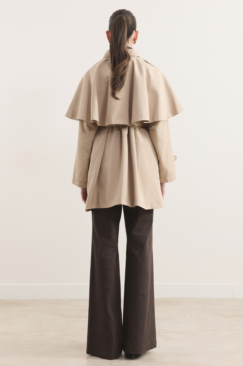 Yaka Detay Kol Kemerli Kısa Trençkot – Bej