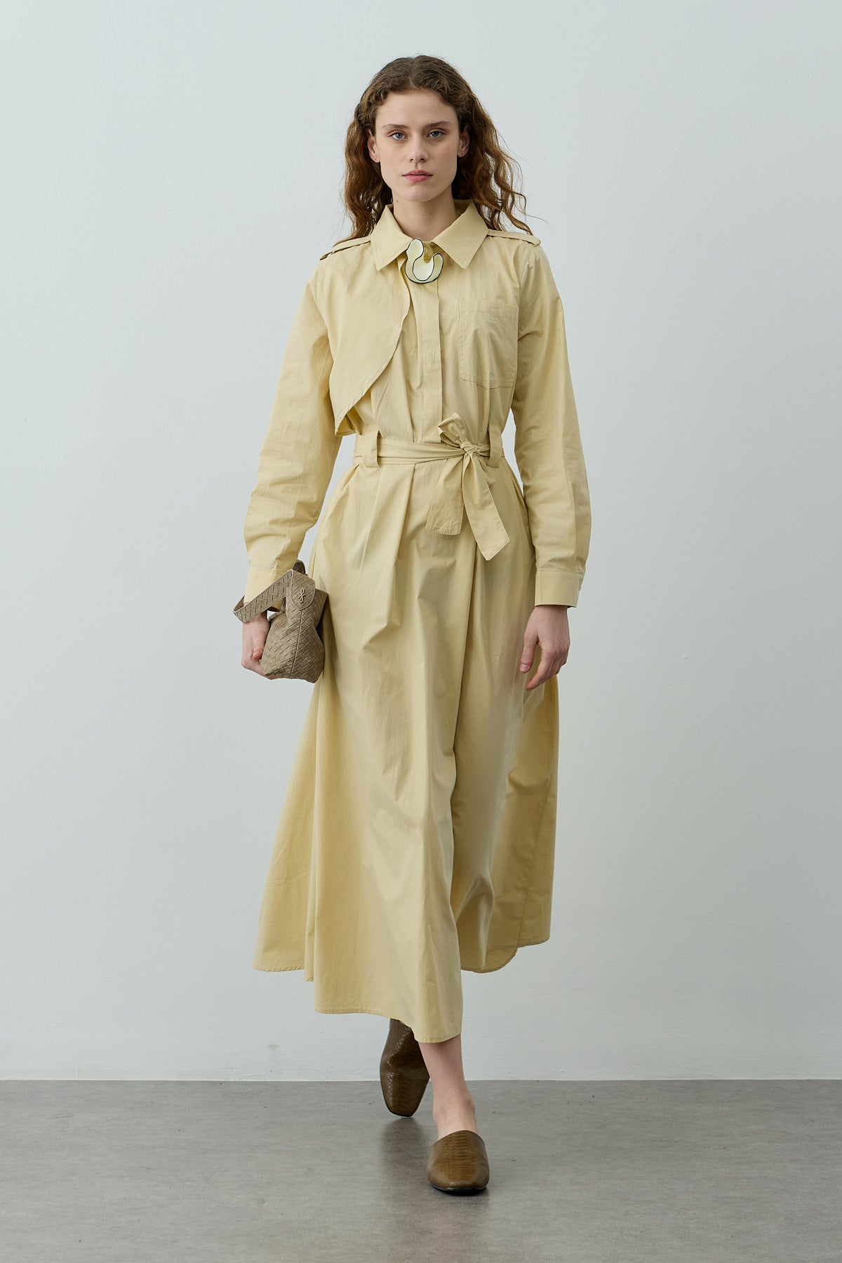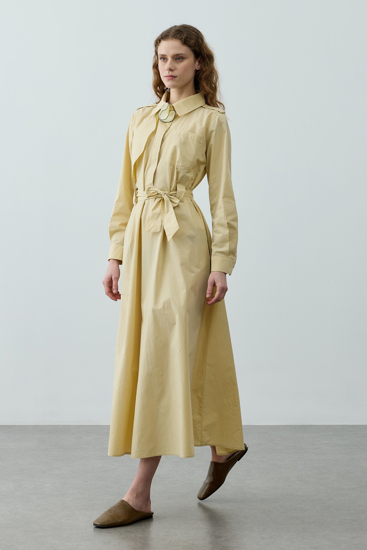 Tags: belted dress, cotton dress, elegant dress, long sleeve dress, maxi dress, trench dress, yellow dress