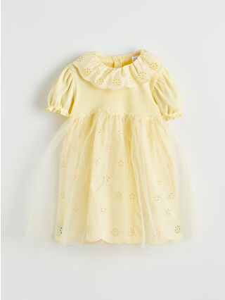Yellow Tulle Detail Baby Collar Dress for Baby Girls