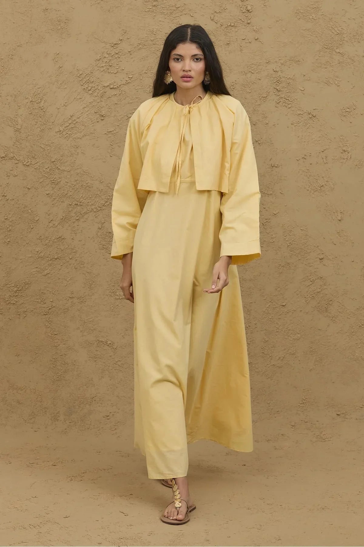 Yellow Veil Jacket Dress Set