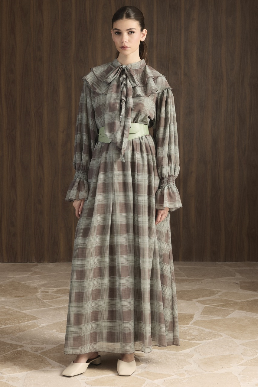 Be the first to review “Yoke Ruffle Checkered Chiffon Dress – Çağla” Cancel reply