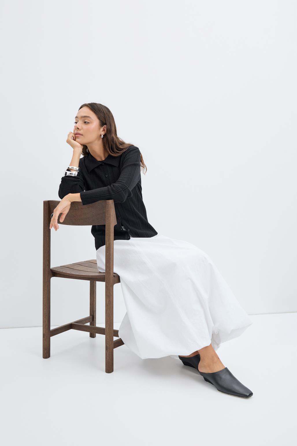 Yüksek Bel Pile Detaylı Balon Etek Ekru, poplin kumaştan üretilmiş, şıklık ve rahatlığı bir arada sunan bir parçadır. Yüksek bel kesimi zarif bir siluet yaratırken, önden pile detayları eteğe hareket ve hacim katar. Fermuarlı kapaması kolay kullanım sağlar. Astarlı yapısı konforu artırır. Hem günlük hem özel kombinlerinizde rahatlıkla tercih edebileceğiniz şık bir seçenektir.