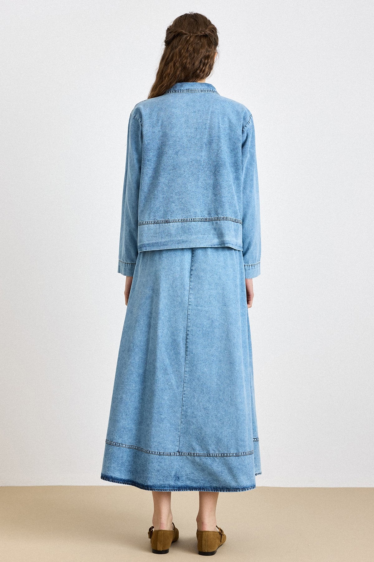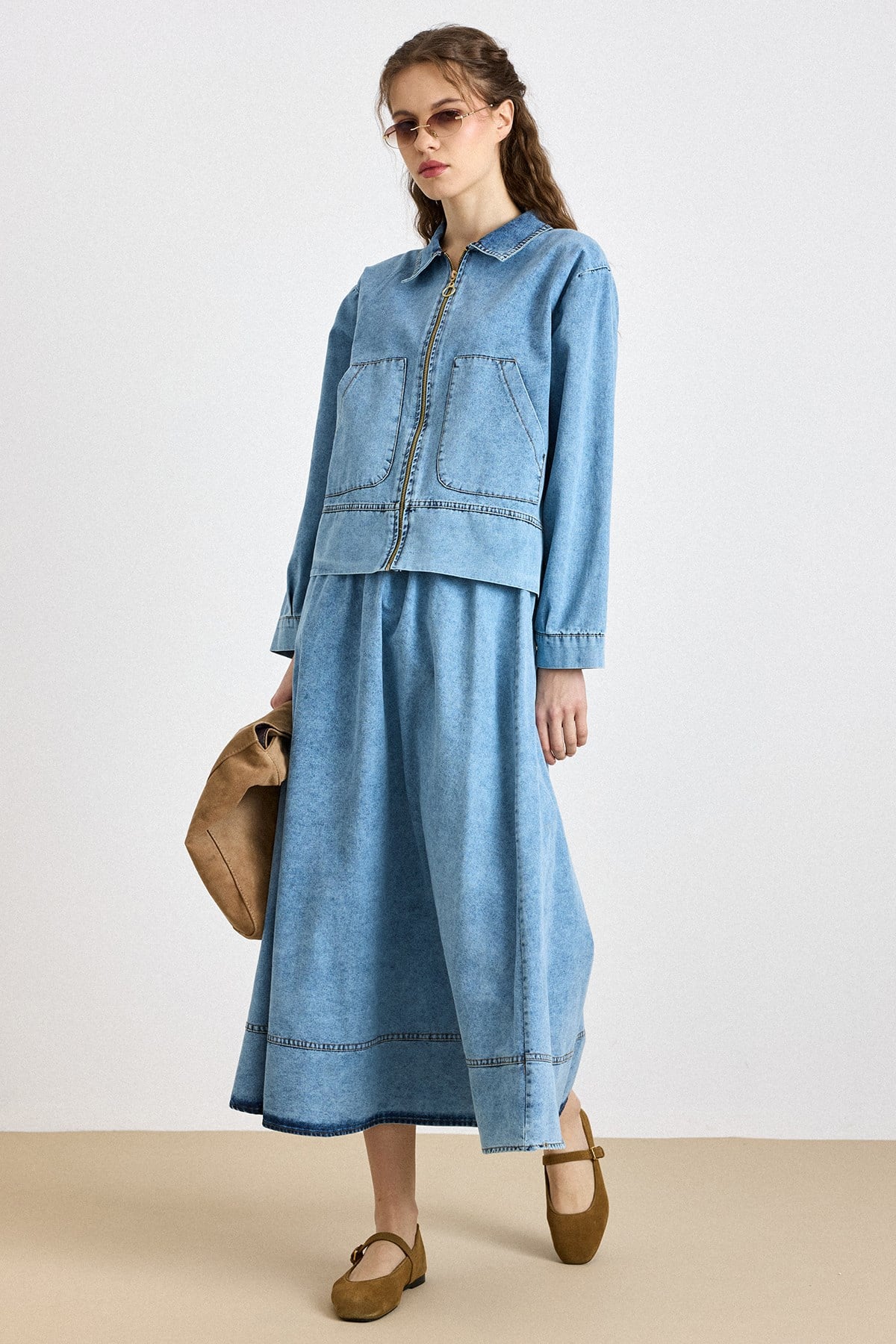Zipper Closure Jacket Skirt Denim Set BLUE 9447-TK