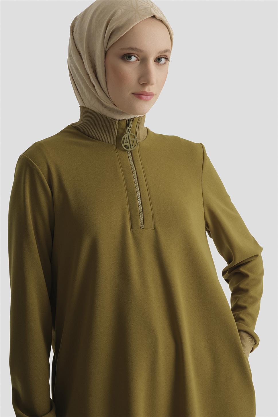 Zipper Detail Basic Tunic in Olive Green