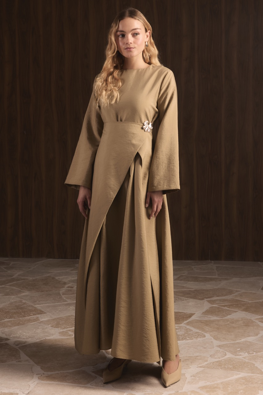 Zoye Front Brooch Cupra Dress – Khaki