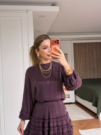 This tunic stands out with ruffle and gathered details, offering light movement and elegant dynamism with every step. Its lightweight,