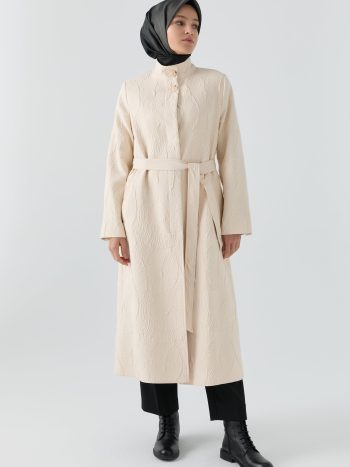 Standing Collar Detailed Coat – Ecru