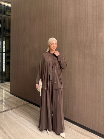 Aliye Brown Three-Piece Set This product consists of three pieces. The top has short sleeves. Top shoulder width: 40cm Top