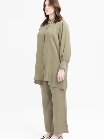 Achieve a modern and comfortable style with the Khaki-Slit Detail Modal Pantsuit. Explore other models in ALLDAY’s Pantsuit category. Complete