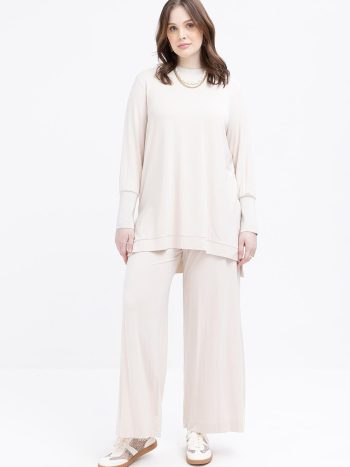 Achieve a modern and comfortable style with the Beige Slit Detail Modal Trouser Set. Explore other models in ALLDAY’s Trouser