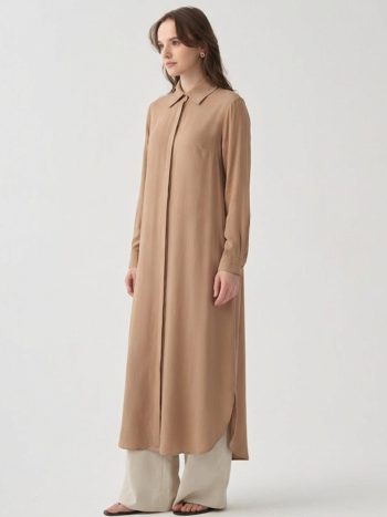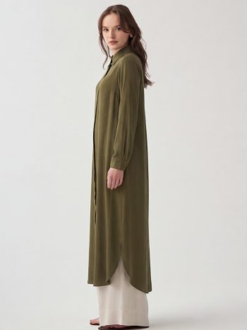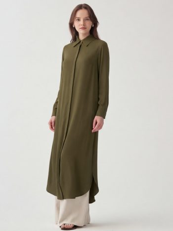 Khaki Hidden Slit Long Shirt