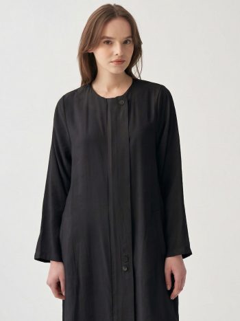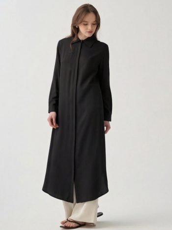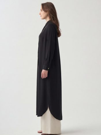 Achieve an elegant look with the Black Hidden Slit Long Shirt, designed for those who seek sophistication in details. Ideal